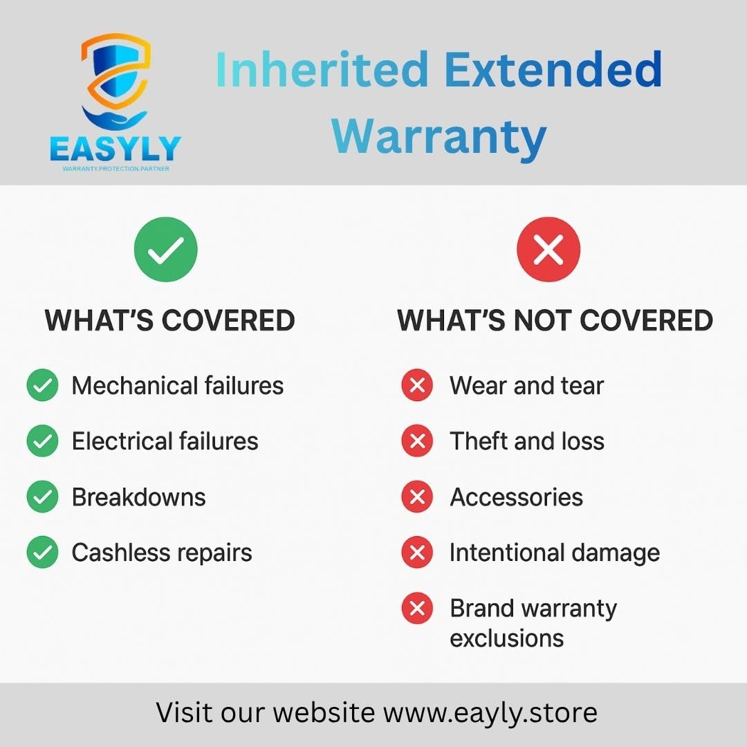✅ What’s Covered ❌ What’s Not Covered Mechanical and electrical breakdowns after brand warranty expiry Normal wear and tear Authorized repairs using genuine spare parts Accidental or intentional damage, liquid or physical damage Nationwide service via OE-authorized centers Loss, theft, misuse, or accessories Digital activation & claim assistance Brand warranty exclusions or pre-existing issues