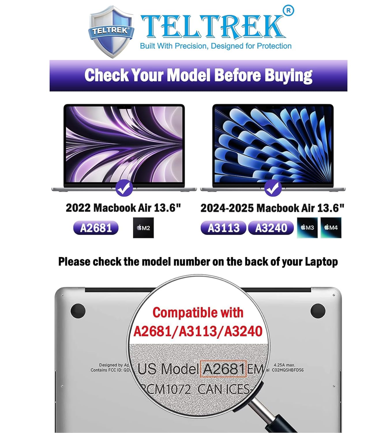 Perfect fit with ensuring accurate edge-to-edge coverage for Macbook Air 13.6 Inch M2/ M3/ M4 Chip A2681 A3113 A3240 [2022-2025].