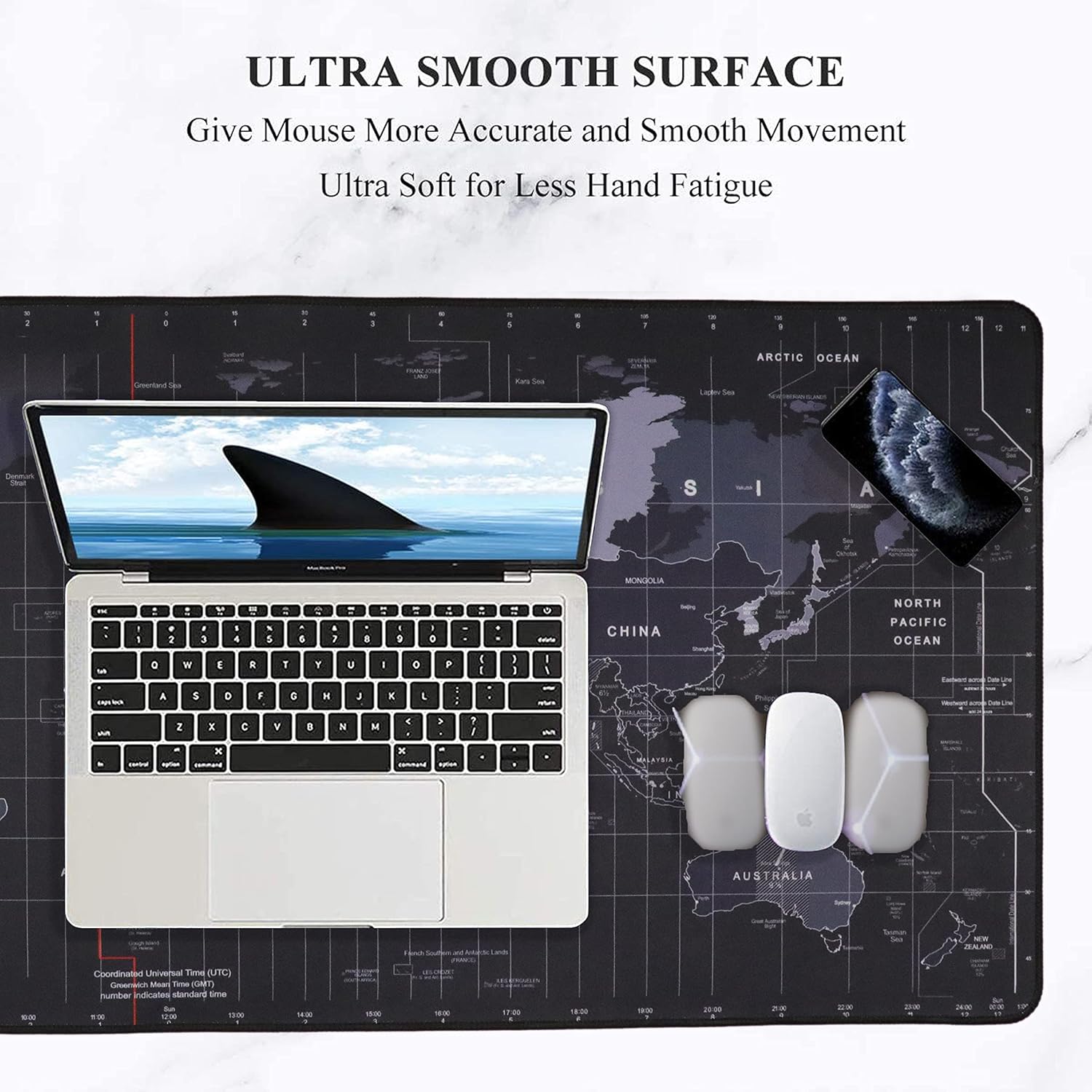 Seagull flight of fashion Large Extended XXL Gaming Mouse Pad with Non-Slip Rubber Base, Stitched Embroidery Edge Mouse Mat for Laptop, Computer and Desk -90 x 40 x 0.3 CM – World Map