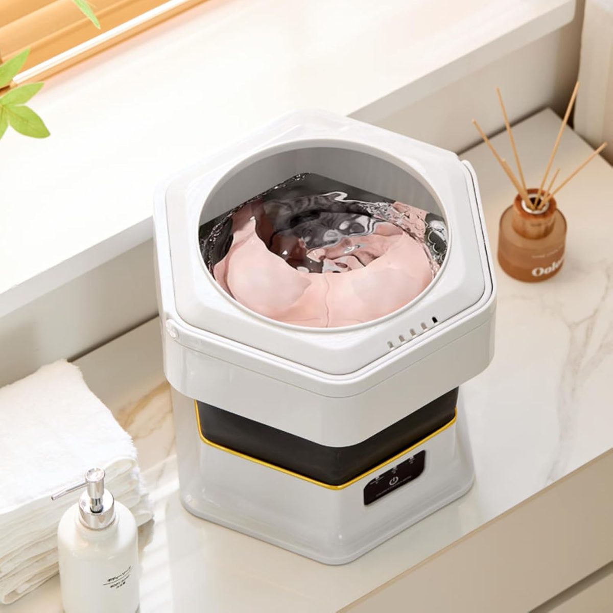Foldable Design: The mini washing machine adopts a foldable portable tub type design which is easy to store when not in use. This portable washing machine Easily fits under a stool or bed without taking up too much space in your home