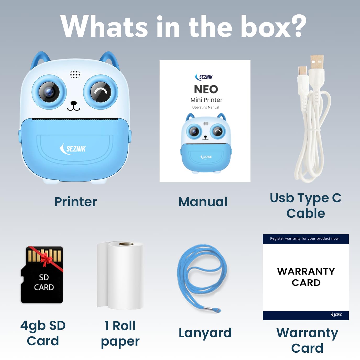 𝐏𝐀𝐂𝐊𝐀𝐆𝐄 𝐈𝐍𝐂𝐋𝐔𝐃𝐄𝐒: 1 Photo Printer, 1 Thermal Paper Roll, 1 Charging Cable, 1 Manual, 1 Lanyard
