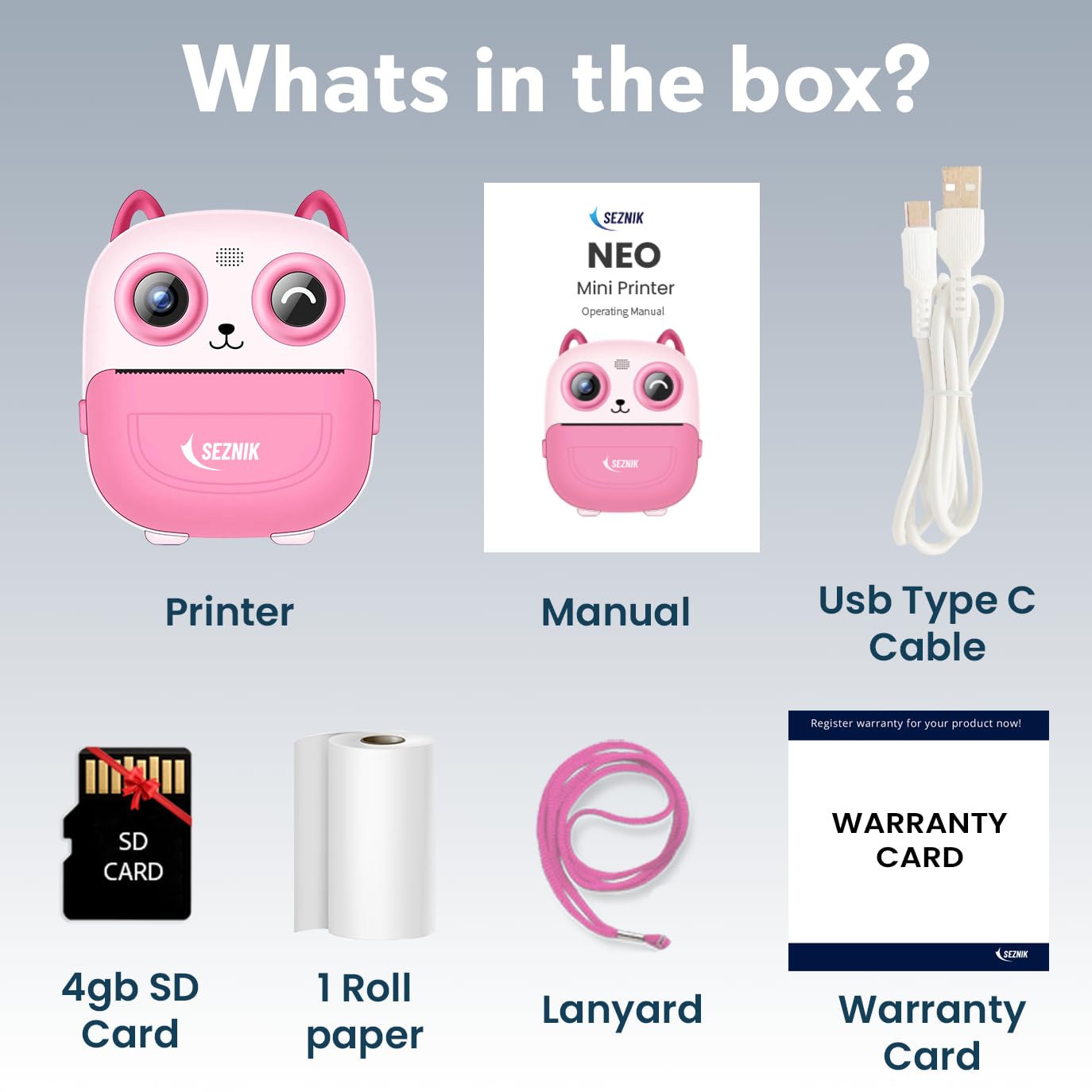 𝐏𝐀𝐂𝐊𝐀𝐆𝐄 𝐈𝐍𝐂𝐋𝐔𝐃𝐄𝐒: 1 Photo Printer, 1 Thermal Paper Roll, 1 Charging Cable, 1 Manual, 1 Lanyard