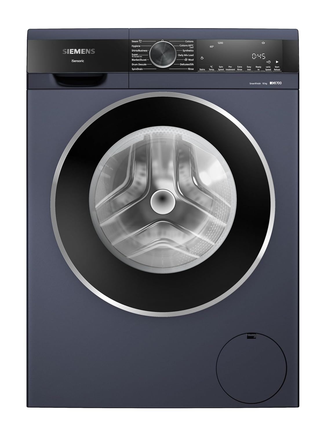 Siemens 10 kg Fully-Automatic Front Load iQ700 Washing Machine (WG52A2ZPIN,Dark Lake) with Features Newly-Designed Softcare Paddles, Pre-Treatment: Pre Soak + Pre Wash, India Specific Stains Program, Hygiene Program, Water Perfect Plus with 256 Sensing Levels, Easy Iron function for Wrinkle Reduction, Anti-Vibration Side Panels