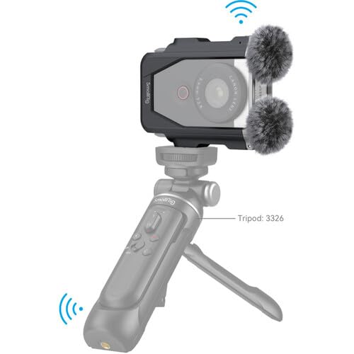 SmallRig Cage Kit for Canon PowerShot V10 4235 SmallRig Cage Kit for Canon PowerShot V10 4235 is designed to protect the camera and attach accessories. It contains two furry windshields, one camera cage, one lens cap, and one storage bag. Among them, the windshields magnetically mount onto the top of mounting plates and are made of carefully selected high-quality materials to reduce wind noise by about 20dB for improved recording; the slide-in cage, locked by one click, features built-in silicone cushions for a secure fit; the silicone lens cap protects the lens from scratches; the wear and dirt-resistant polyester storage bag stores the camera and the cage kit altogether; and the cage not only gives full access to controls, interfaces, and built-in camera stand but comes with 1/4”-20 threaded holes to attach accessories like a tabletop tripod or the cold shoe adapters (included in the box) for use in live broadcast and vlogging.