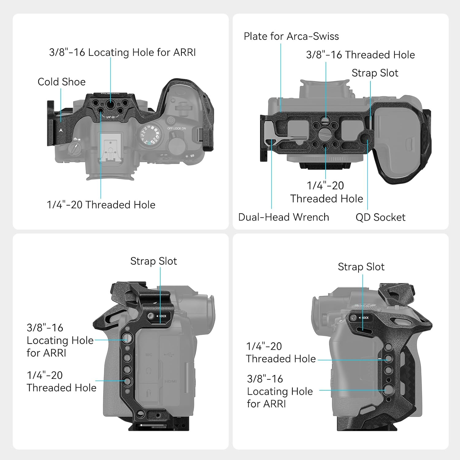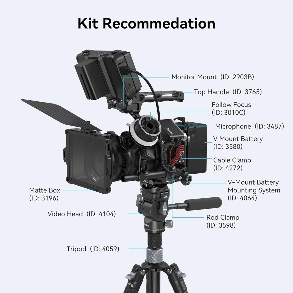 Multiple Mounting Options: The cage features built-in 1/4″-20 and 3/8″-16 threaded holes, as well as a locating hole for ARRI, allowing you to attach various accessories such as top handles 3765 2165C, side handles 4016, and monitor mount 2903B. The built-in cold shoe allows you to attach microphones, LED video lights and other accessories