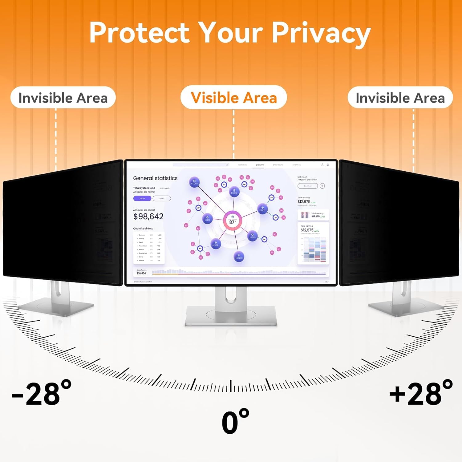 【 Dark Screen For Others 】– Clear view for you. The computer privacy filter makes the screen appear dark when looking at it from an angle (the angle is about 30°- 60°), but bright when looking directly at it. To change the privacy angle from 60° to 30° degrees – simply adjust your laptop’s brightness level