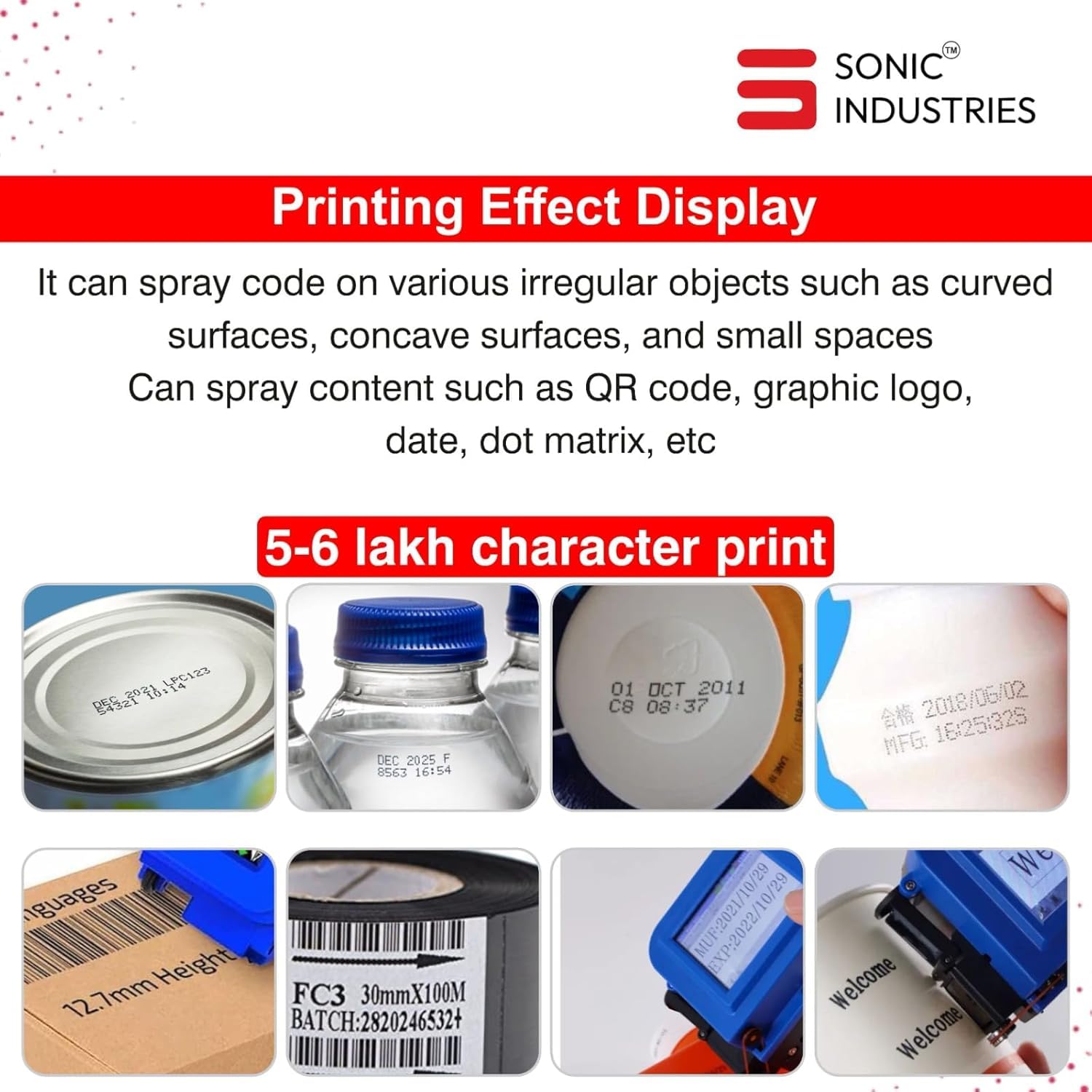 High-Resolution Printing on Uneven Surfaces – Achieves sharp, clear prints of logos, barcodes, batch numbers.