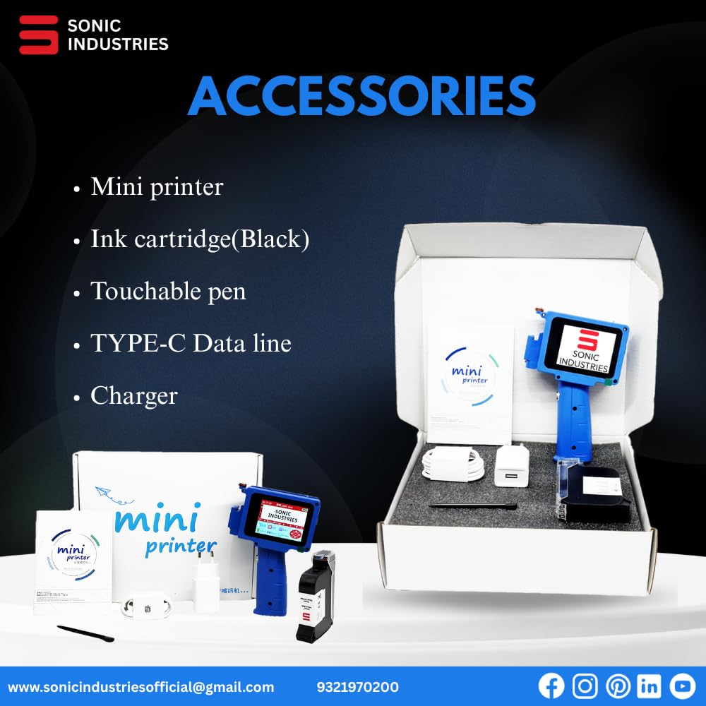 SONIC INDUSTRIES Mini Inkjet Batch Coding Machine � Handheld Date & MRP Printer | Compact TIJ Thermal Printer