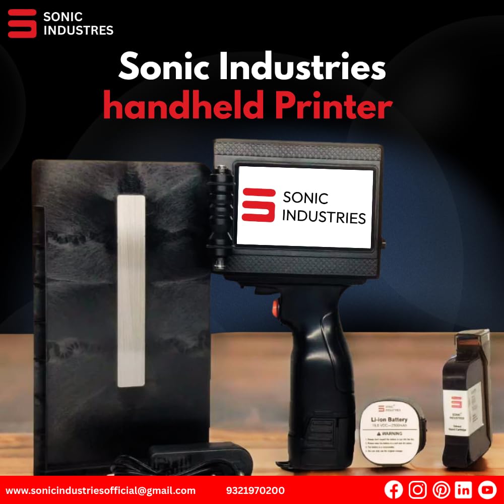 The Sonic Industries Plastic Body Inkjet Printer is your reliable companion for fast, professional on-the-go product coding. This compact, handheld TIJ printer makes batch numbers, expiry dates, barcodes, and logos easy to print with precision on a variety of packaging materials. Designed with ease and affordability in mind, the plastic body ensures both portability and durability, while the high-resolution 600 DPI output guarantees legible and smudge-proof markings. Perfect for small-scale manufacturers, food packers, retailers, or mobile operations looking for an all-in-one batch printing solution. Its cordless design, responsive touchscreen, and compatibility with solvent-based cartridges make this printer a powerful, budget-friendly tool for modern packaging workflows. Technical Specifications Feature Details Brand Sonic Industries Model Plastic Body Handheld Printer Printing Tech TIJ (Thermal Inkjet) Max Print Height 12.7 mm Resolution 600 DPI Ink Type Solvent-Based Fast-Dry Ink Ink Colors Black (Optional: Red, Blue, White) Materials Supported Plastic, Carton, Metal, Pouches, Laminates, Foil Display 4.3-inch Touchscreen Operation Wireless (Rechargeable Battery) Battery Backup 6–8 Hours Connectivity USB Input, Direct Touchscreen Editing Approx. Weight 480–500 g Uses MRP, Batch, Expiry, QR, Barcodes, Logos