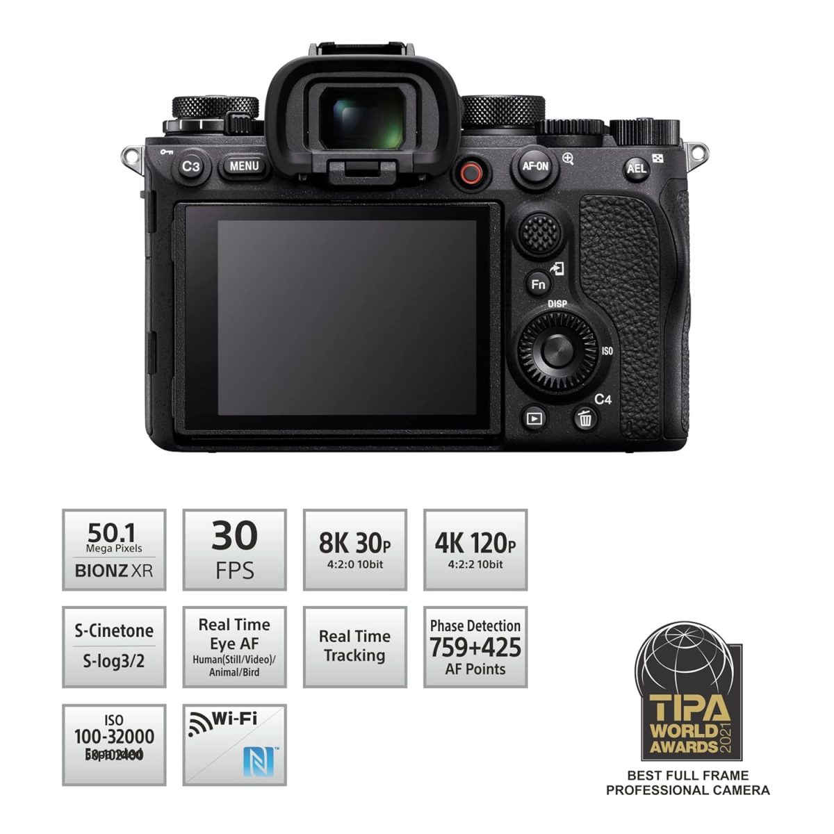 Sony Alpha ILCE-1 Mirrorless Full-Frame Camera | 30 FPS | 50.1 MP | 8K 30P, 4K 120P | Real-time Eye AF, Real time Tracking – Black