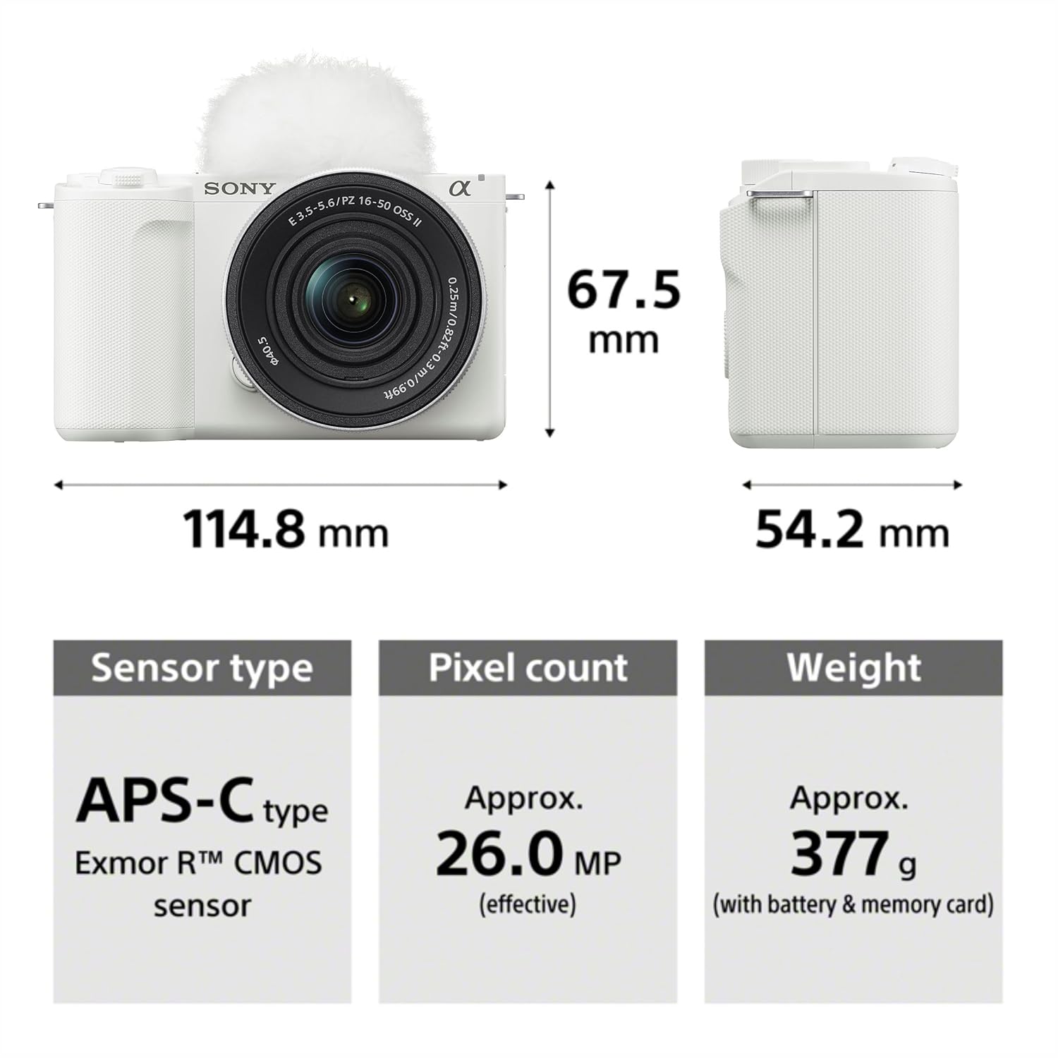 Included Components : SELP16502, Rechargeable Battery NP-FZ100, Shoulder strap, Wind Screen, Wind Screen Adaptor, Lens cap