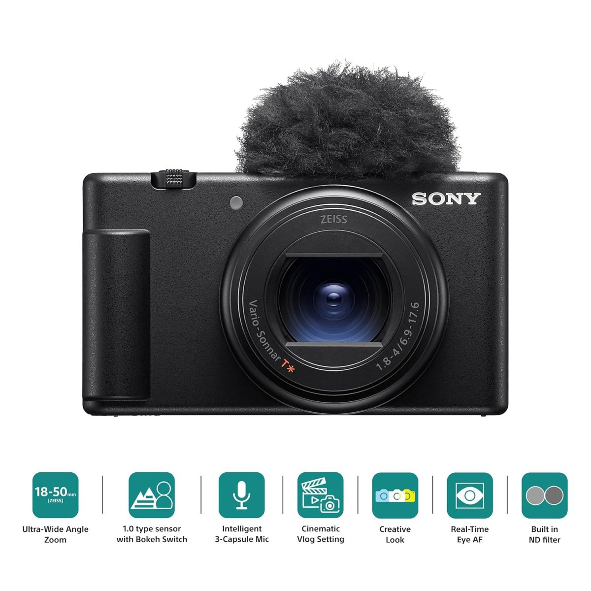 he ZV-1 II is an ideal all-round vlog camera. Compact and portable, it features a wide-angle zoom lens for versatile framing, a 1.0-type image sensor for great image quality, and an intelligent microphone for clear audio recording.