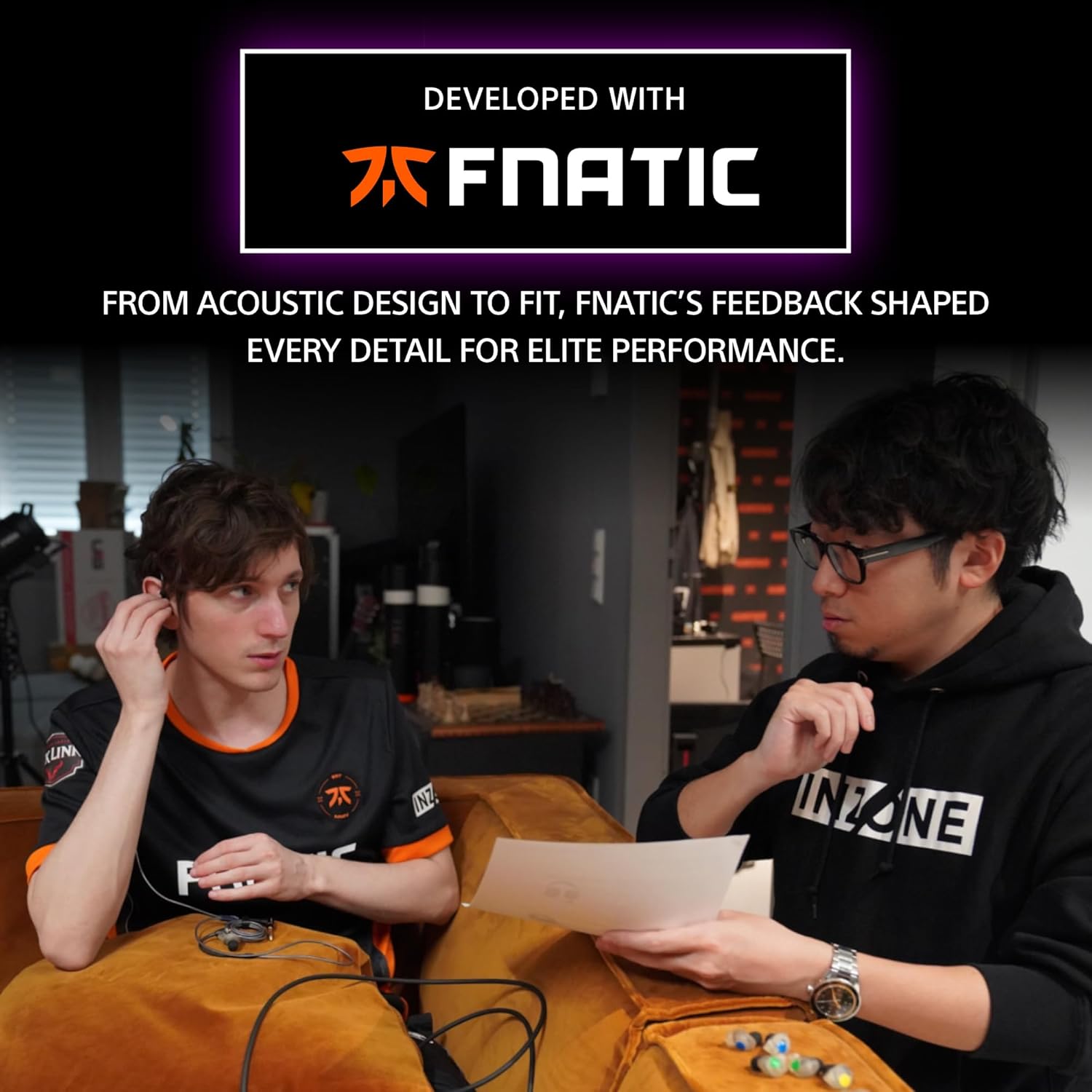 DEVELOPED WITH FNATIC: In collaboration with Fnatic pros, the INZONE E9 gaming earbuds are tuned for FPS games, delivering precise sound and competitive audio performance.