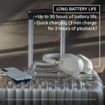 Up to 40-hour battery life for continuous music playtime (With Noise Cancellation ON, get up to 30 Hours of playtime, and With Noise Cancellation off get up to 40 Hours.) All-day power and quick charging (3 min charge for 3 hours of playback).