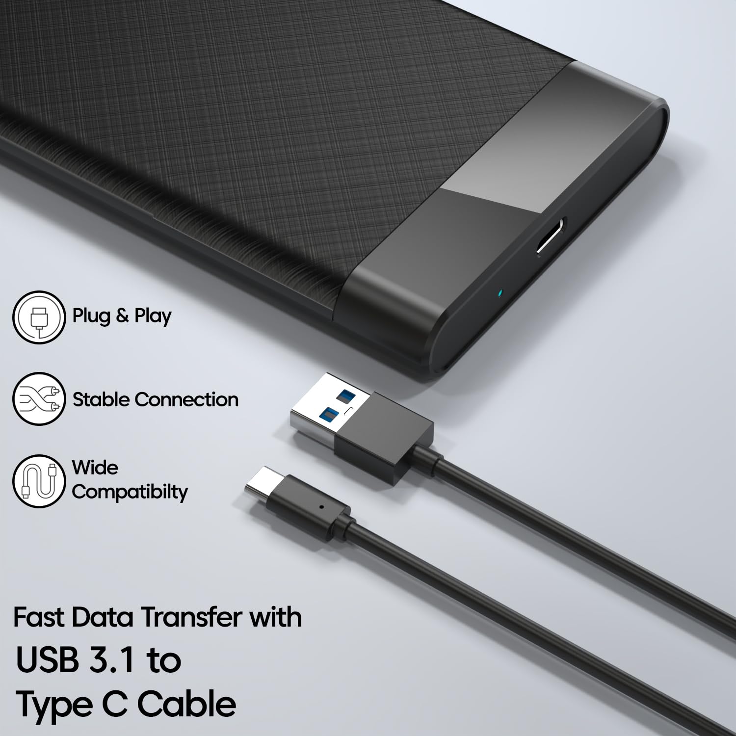 Sounce 2.5-Inch Hard Drive Enclosure Type-C USB 3.1 to SATA III 6Gbps High-Speed External HDD/SSD Enclosure Tool-Free, UASP Support Compatible with 7mm/9.5mm 2.5″ SSD & Laptop HDD (Black)