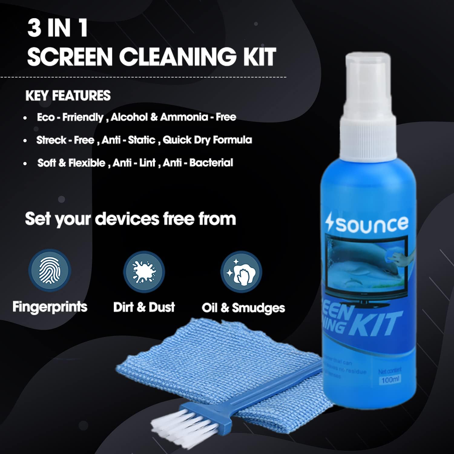 【Longevity 】The Sounce 3 in 1 Cleaning Kit is a long-lasting solution for cleaning electronic devices. The 100ml cleaning liquid is enough for multiple uses, and the microfiber cloth can be washed and reused multiple times, which makes the kit a cost-effective and eco-friendly cleaning solution. The soft brush is also durable and can be used for a long time without losing its effectiveness.