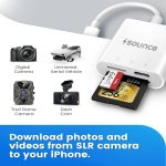 【Triple Functionality】: The Sounce 3 in 1 SD TF Card Reader Adapter seamlessly combines three essential functions in one compact design. Featuring dual card slots supporting both SD and TF (microSD) cards, along with a dedicated charging port, this versatile adapter allows you to access, transfer, and manage data from two different memory card formats while fast charging your iPhone or iPad.