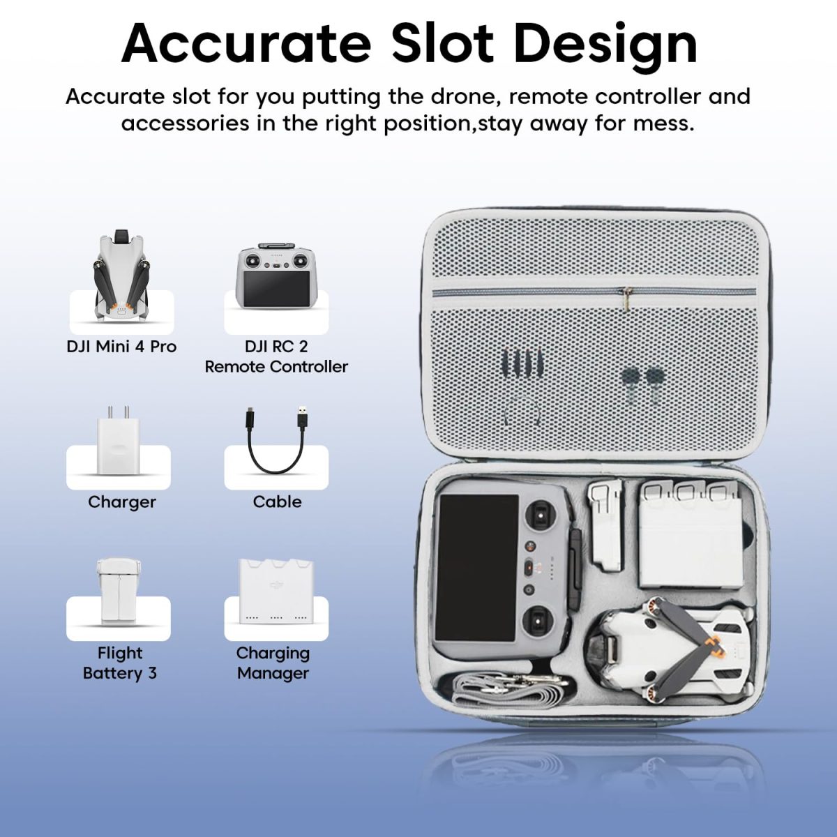 Sounce Carrying Case for DJI Mini 4 Pro – Hard Shell Storage Case Accessories, RC 2 Controller, Battery Charging Hub & More – Waterproof, Shockproof & Portable Travel Case (Grey)