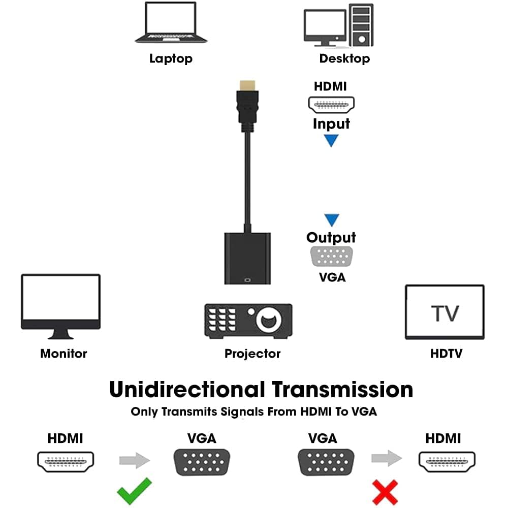 ✅【HDMI to VGA Conversion】: Please note that this adapter is designed specifically to convert HDMI signals to VGA and does not support VGA to HDMI conversion. Easily connect your HDMI-compatible device to a VGA monitor or projector with an additional VGA cable (not included) for seamless video output.