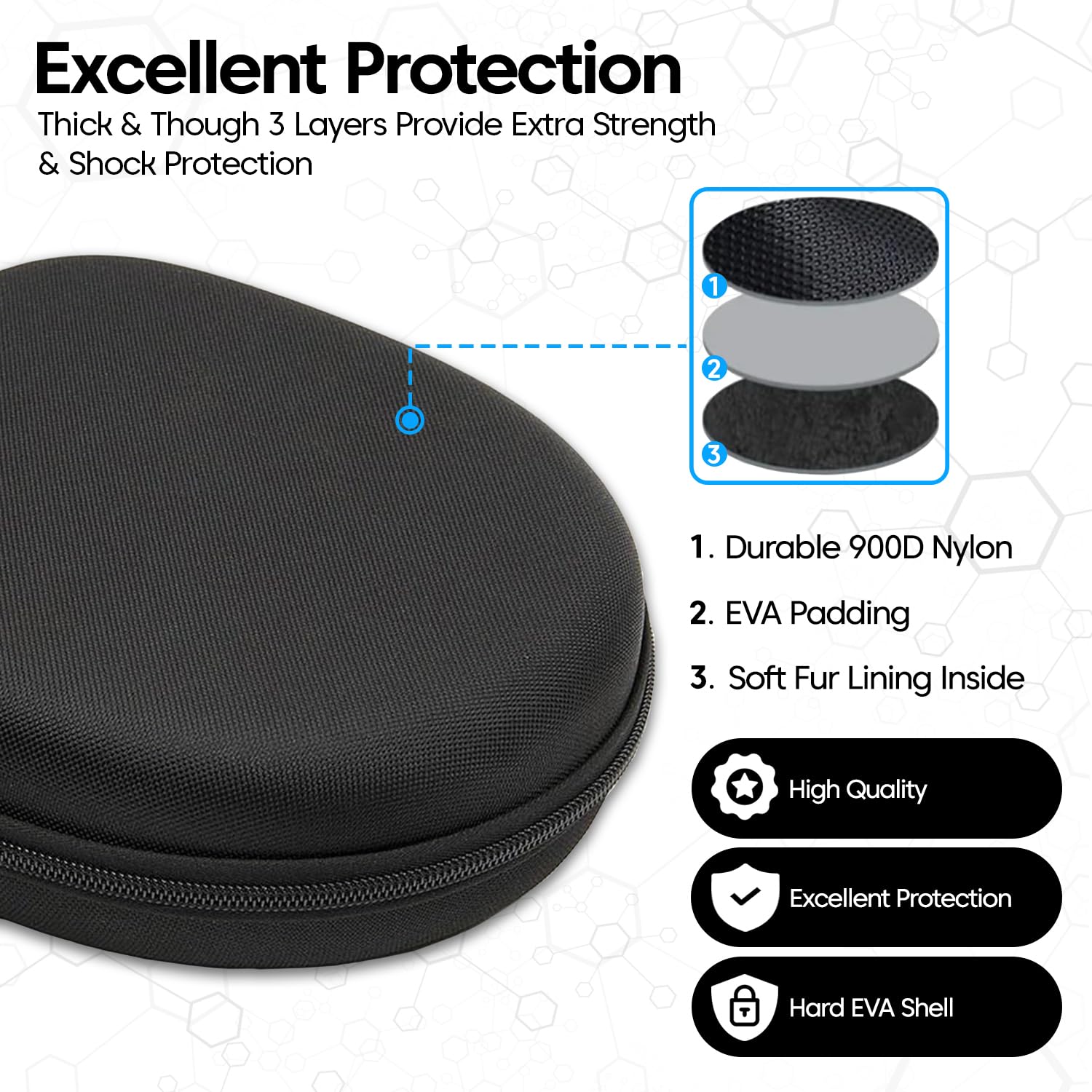 ✅【Reliable Protection】The headphone case is crafted with a robust hard EVA shell that absorbs impacts, shielding your headphones from drops, scratches, and dust. Its lightweight yet durable design makes it perfect for travel, and its water-resistant features offer protection against moisture. Rest assured, your headphones are safe and secure, no matter the conditions.