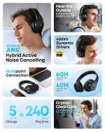 Dual connection: connect to two devices simultaneously via BT 5.0 and switch back and forth effortlessly between them. Audio output is automatically from the device you need, whether you’re working on a laptop or want to answer a call.; App for adjusting the equaliser: download the soundcore app to refine the sound with the adjustable EQ and 22 preset options. You can switch between the three modes ANC, Normal and Transparency, and relax with white noise.