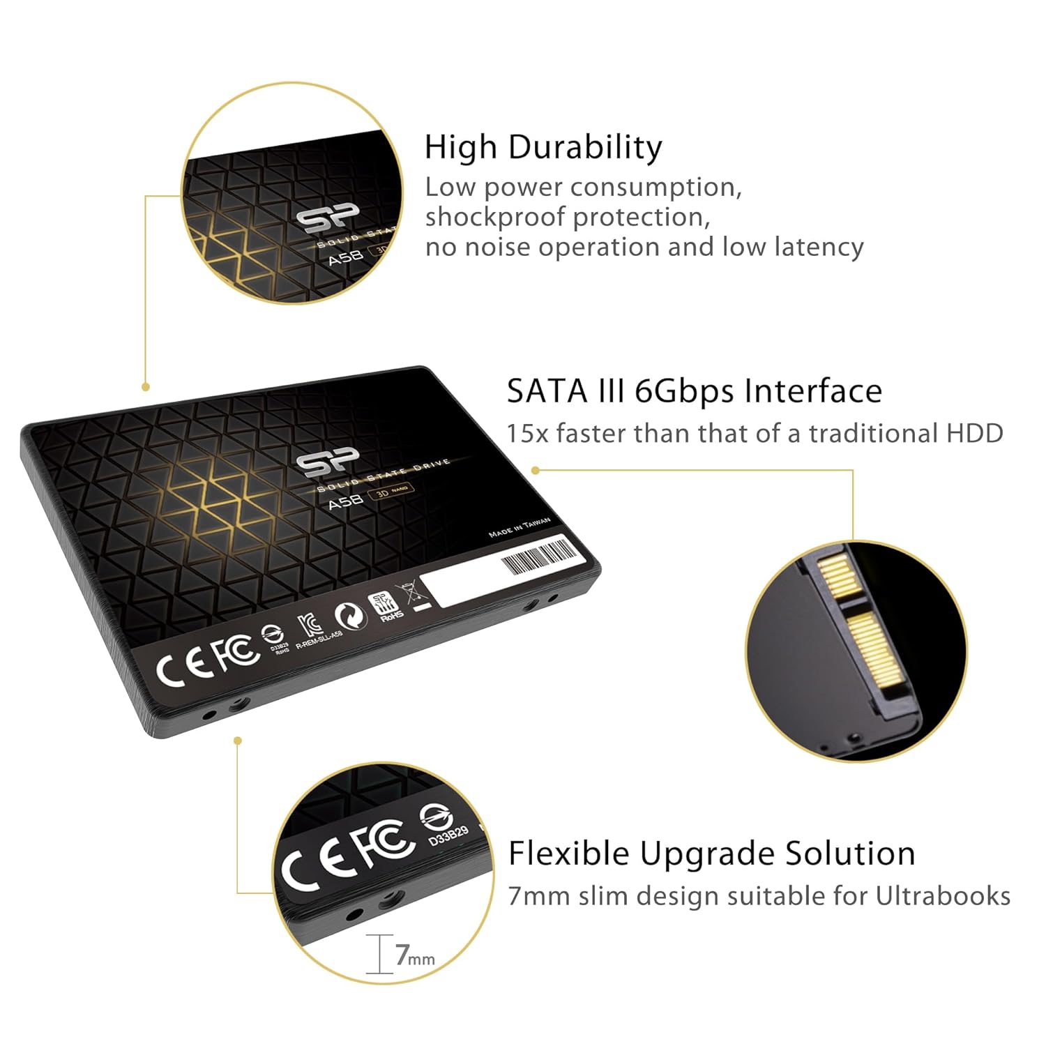 SP Silicon Power Ace A58 2TB 2.5 Inch SATA III SSD, 3D NAND with SLC Cache, Up to 500MB/s, Internal Solid State Drive for Desktop Laptop Computer