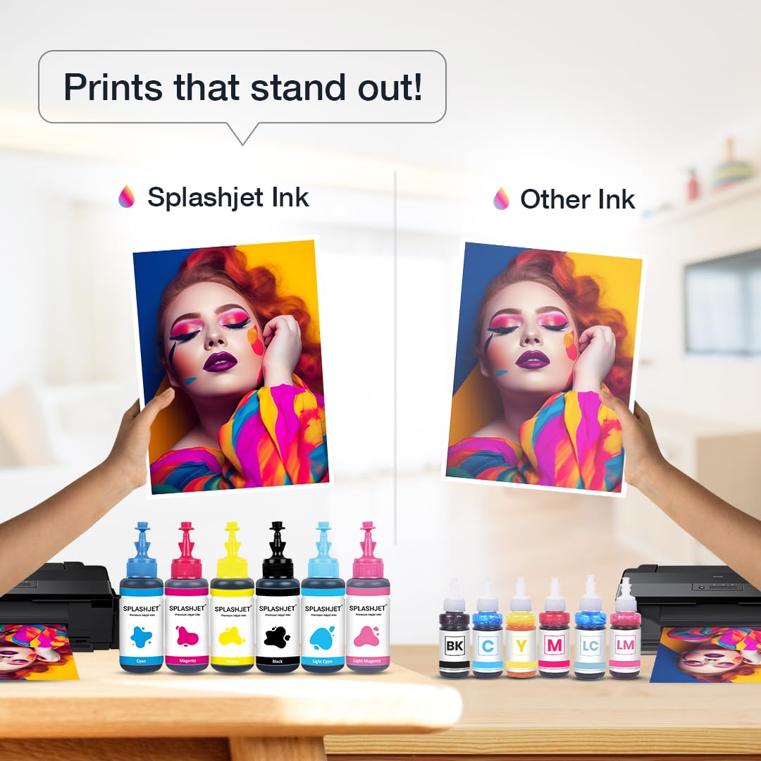 Splashjet inks are developed with the highest purity raw material to make them the best compatible ink solution for Epson EcoTank printers. Our inks are formulated specially to offer Vivid and bright colours with Excellent colour matching print performance. All our inks are tested rigorously on different parameters for reliable print performance each time you print. Splashjet inks help you reduce your printing cost while maintaining print quality.