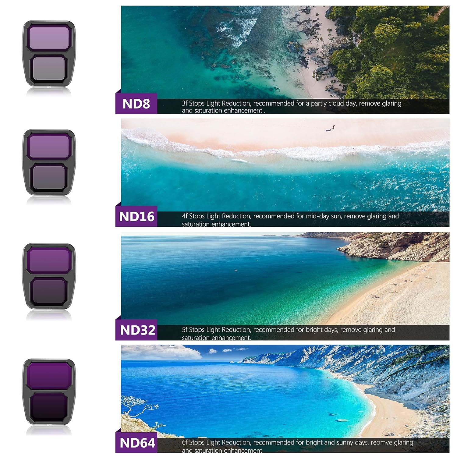 【Package Include】1 x filter case; 1 x 4-pack of ND8, ND16, ND32, ND64 filters for dji air 3. (NOTE: NOT INCLUDED Air 3 drone and other accessories!)
