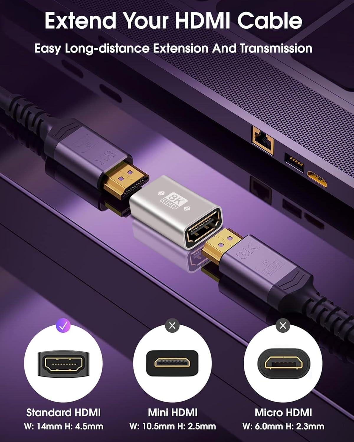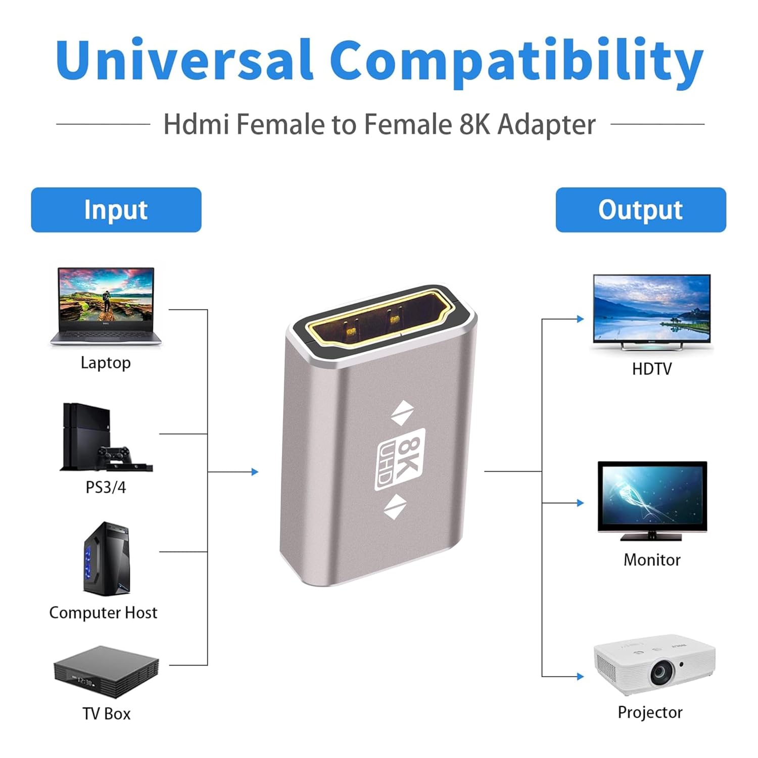 8K HDMI Connector : Experience high definition visuals with Female to Female HDMI Extension Adapter