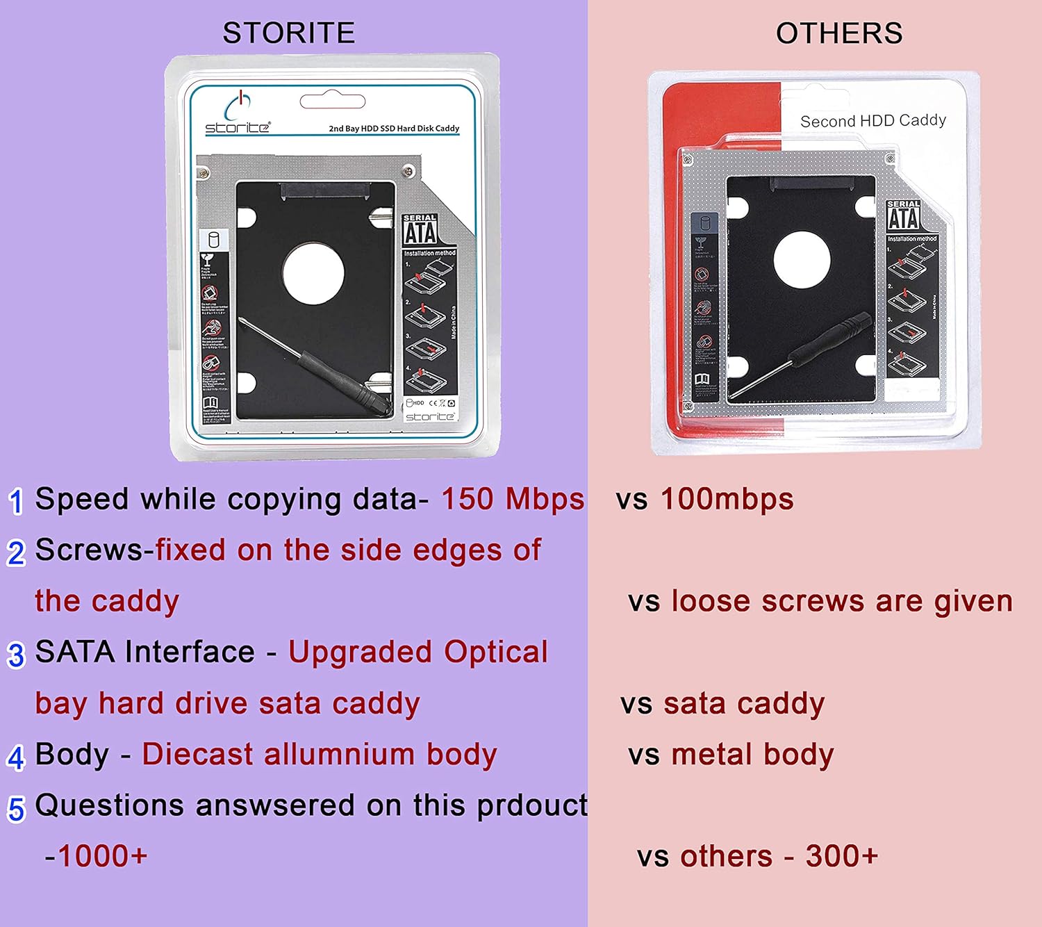 Compatible with: 2.5″/9.5mm SATA HDD or SSD, hard drive not include. 100 percent brand new 9.5 mm-thick caddy. Shock Resistant: No