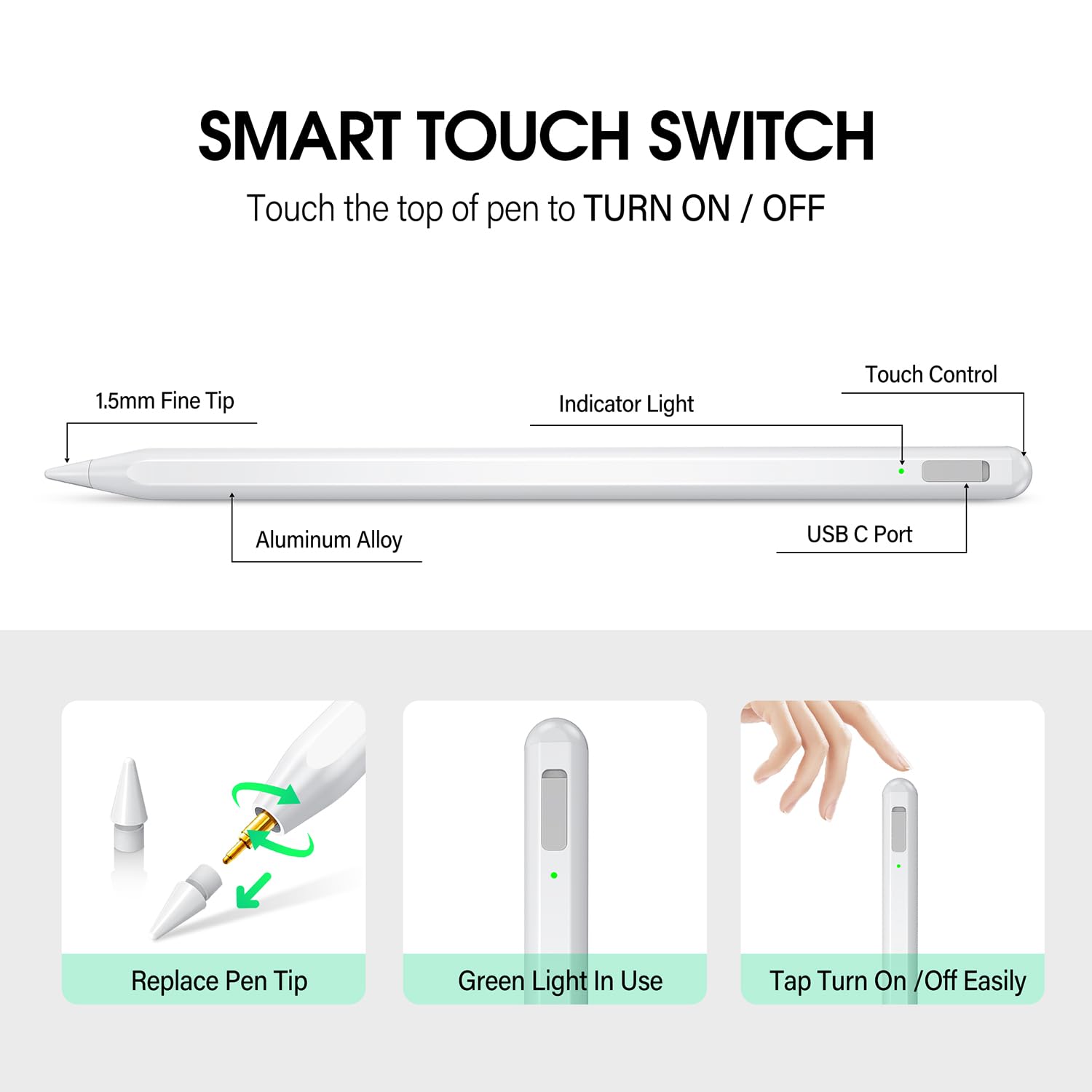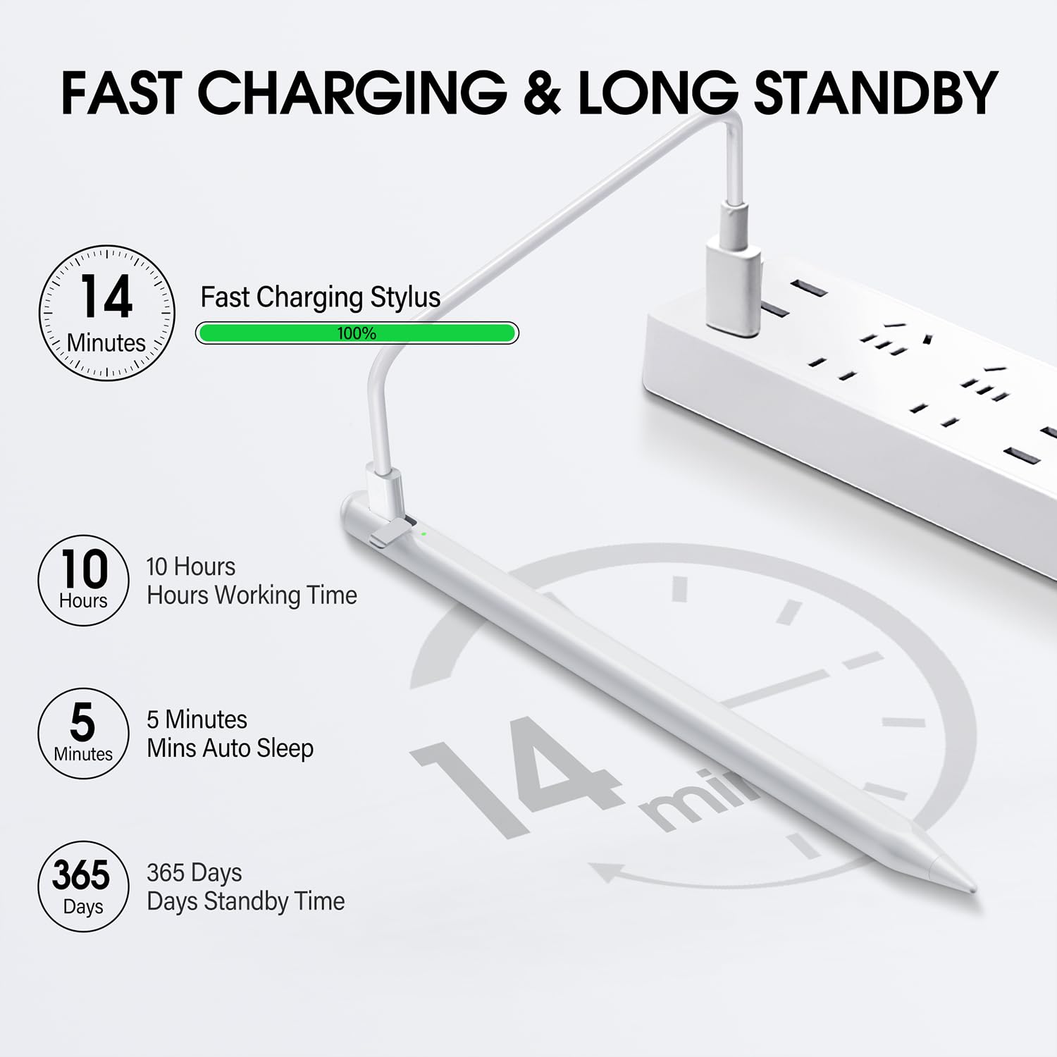【Fast Charging & Auto-sleep Design】14 minutes fully charged with type-C cable, support 10 hours continuous use. Additionally, the iPad pencil will auto power-off after 5 minutes of inactivity, effectively saving power and extending the battery life.