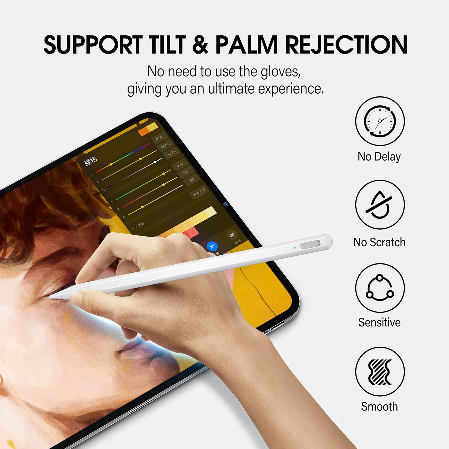【Palm Rejection & Magnetic Design】The iPad Pencil is palm-resistant and can be tilted to draw, allowing your hands to write naturally on the screen without leaving any traces on your iPad. The upgraded built-in magnet in the pencil for iPad offers stronger attraction than the original iPad Pencil and firmly attaches to the side of iPad, This enables easy portability and prevents the stylus from slipping or getting lost.