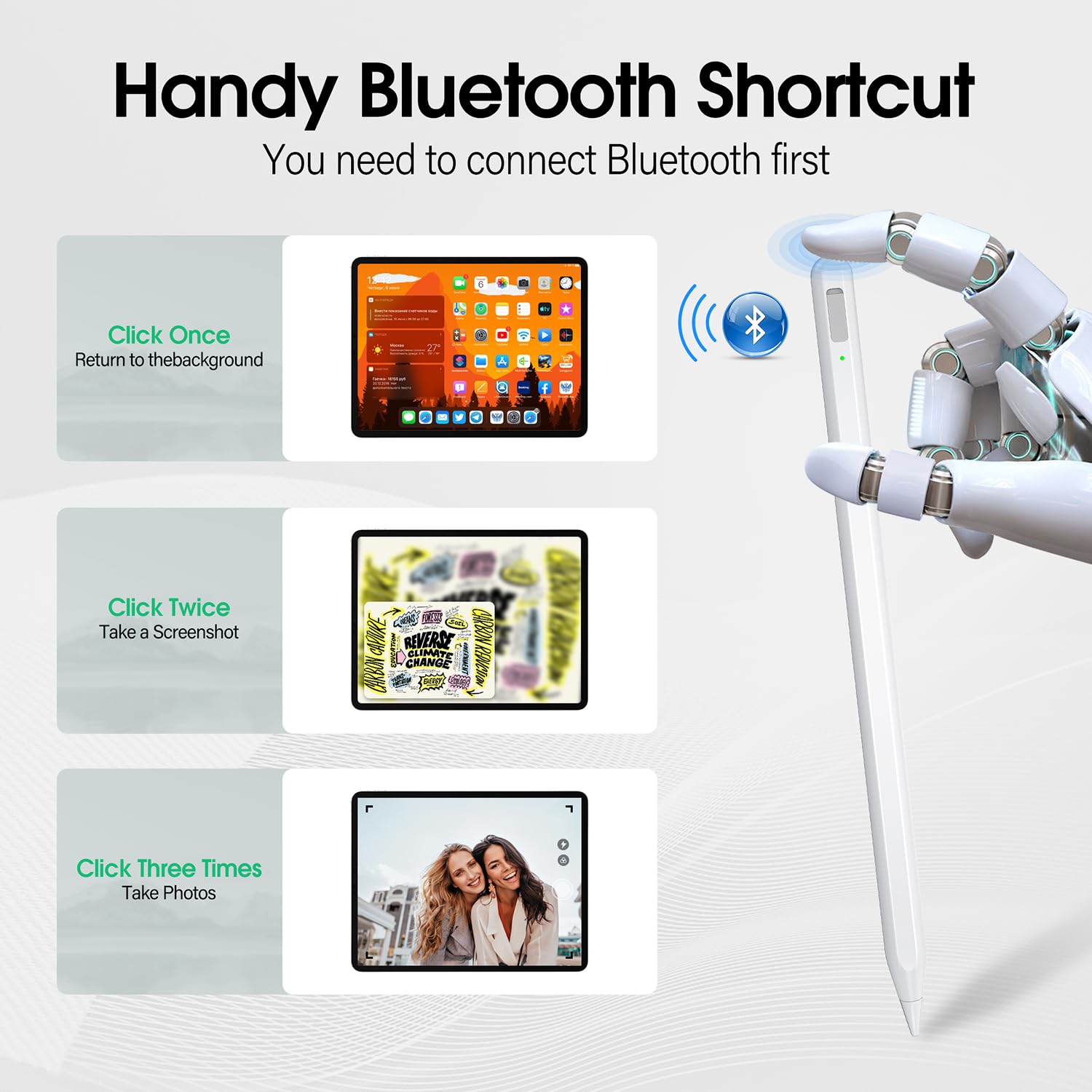 【Convenient & Quick】Easy to pair the pen with the device via Bluetooth. After pairing, click the top button to return to the background, double-click to take a screenshot, and triple-click to take a photo remotely to record beautiful moments. Makes using the stylus easier and faster. The ios system power display is convenient for you to check the power of the iPad Pencil at any time.