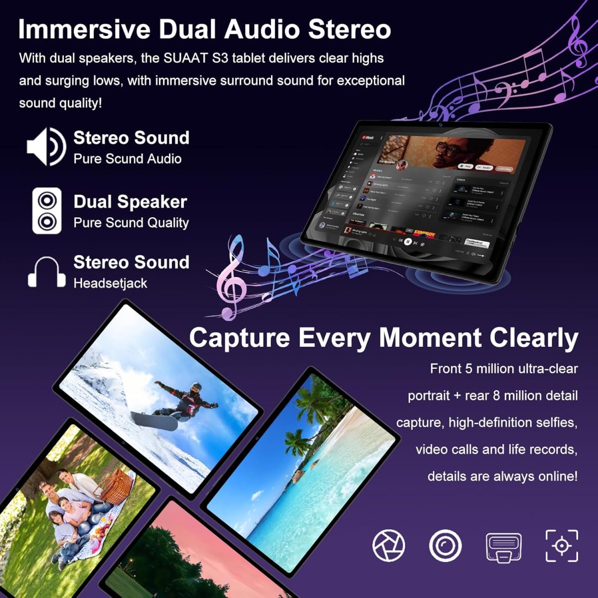 2025 UPGRADED MODEL: SUAAT tablet is a fully upgraded Android 14 tablet with an octa-core processor clocked up to 1.8GHz to ensure smoother operation and enhanced privacy and security protection