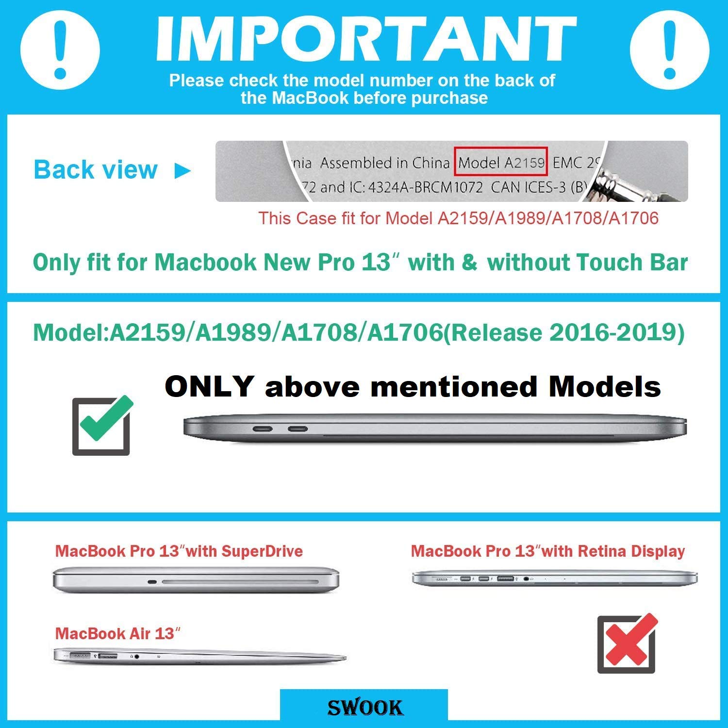 ⚠️【Compatibility】Fits ONLY MacBook Pro 13 Inch (2019/2018/2017/2016 Release With / Without Touch Bar) model number A2159 / A1989 / A1706 / A1708 ONLY. 🚫 Will NOT fit any other MACBOOK models.