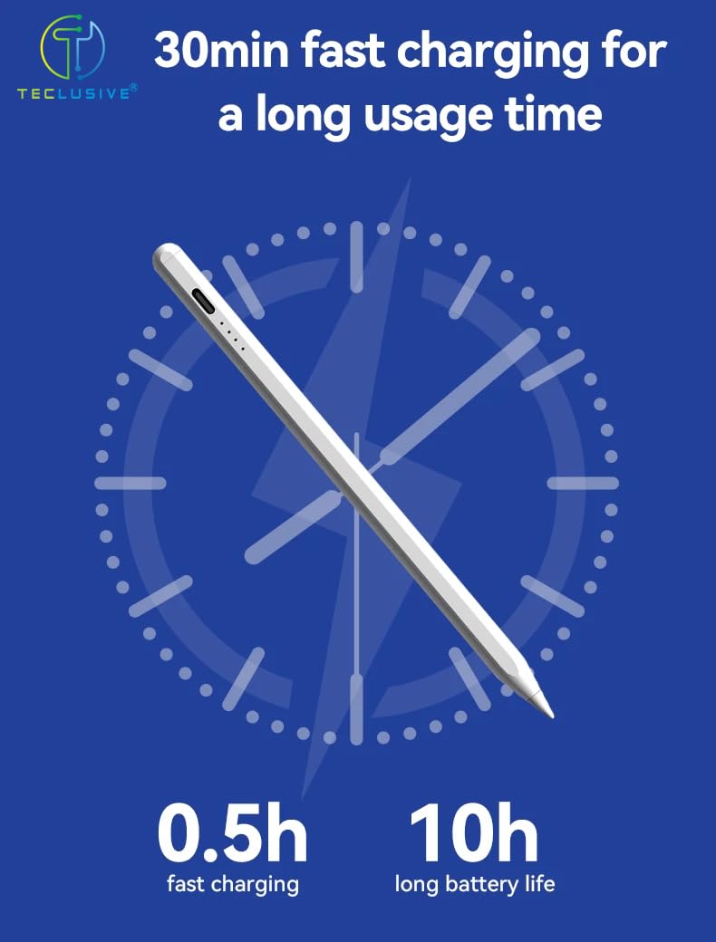 T Teclusive Smart Stylus Pen Compatible with Android Tablet Galaxy Realme One Plus/iPhone 15 14 | Pointed Tip | Remove Tempered Glass for Proper Working | No Palm Rejection