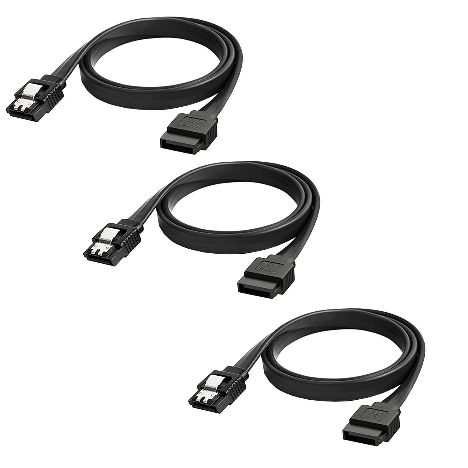 TAAPSEE SATA Cable III 6Gbps Straight HDD SDD Data Cable with Locking Latch 16 Inch Compatible for SATA HDD, SSD, CD Driver, CD Writer (Black) (3 PACK)