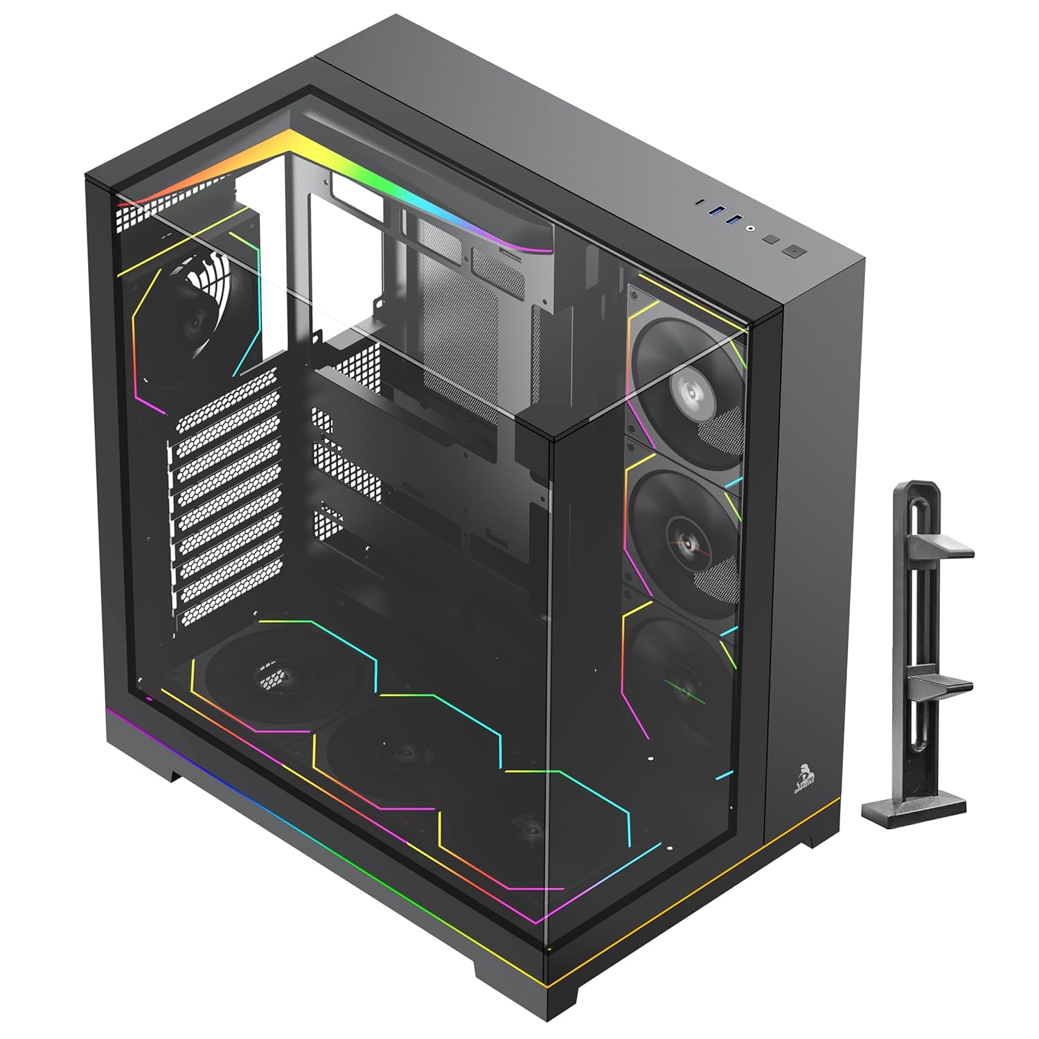 Immersive Viewing Experience! Its stunning three-sided panoramic tempered glass design offers unobstructed views of your meticulously crafted system.