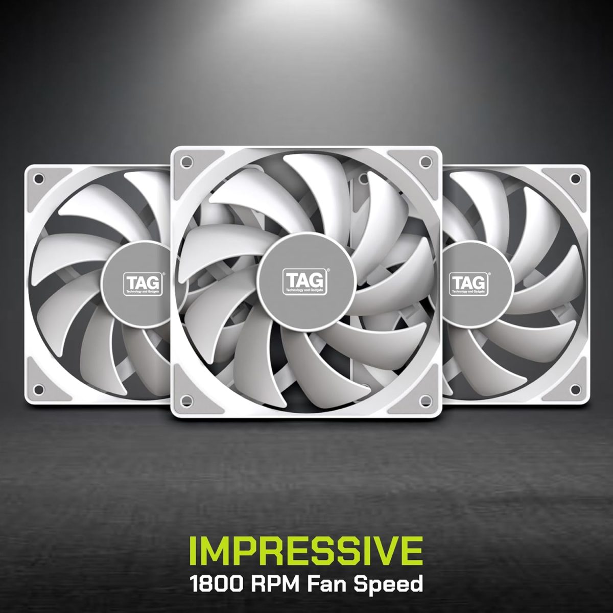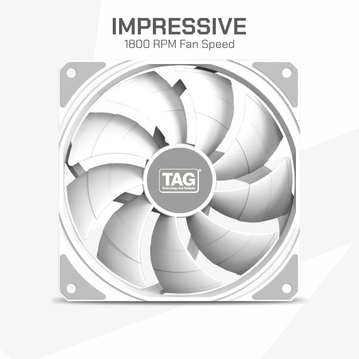 TAG Windforce 120 PC Case Fan with 120mm Cooling Fan | 1800 RPM High Fan Speed | 78.5 CFM Airflow | High Performance Fan | 36.8 dBA Noise | Hyadraulic Bearing | 4 Pin PWM Connector (White)