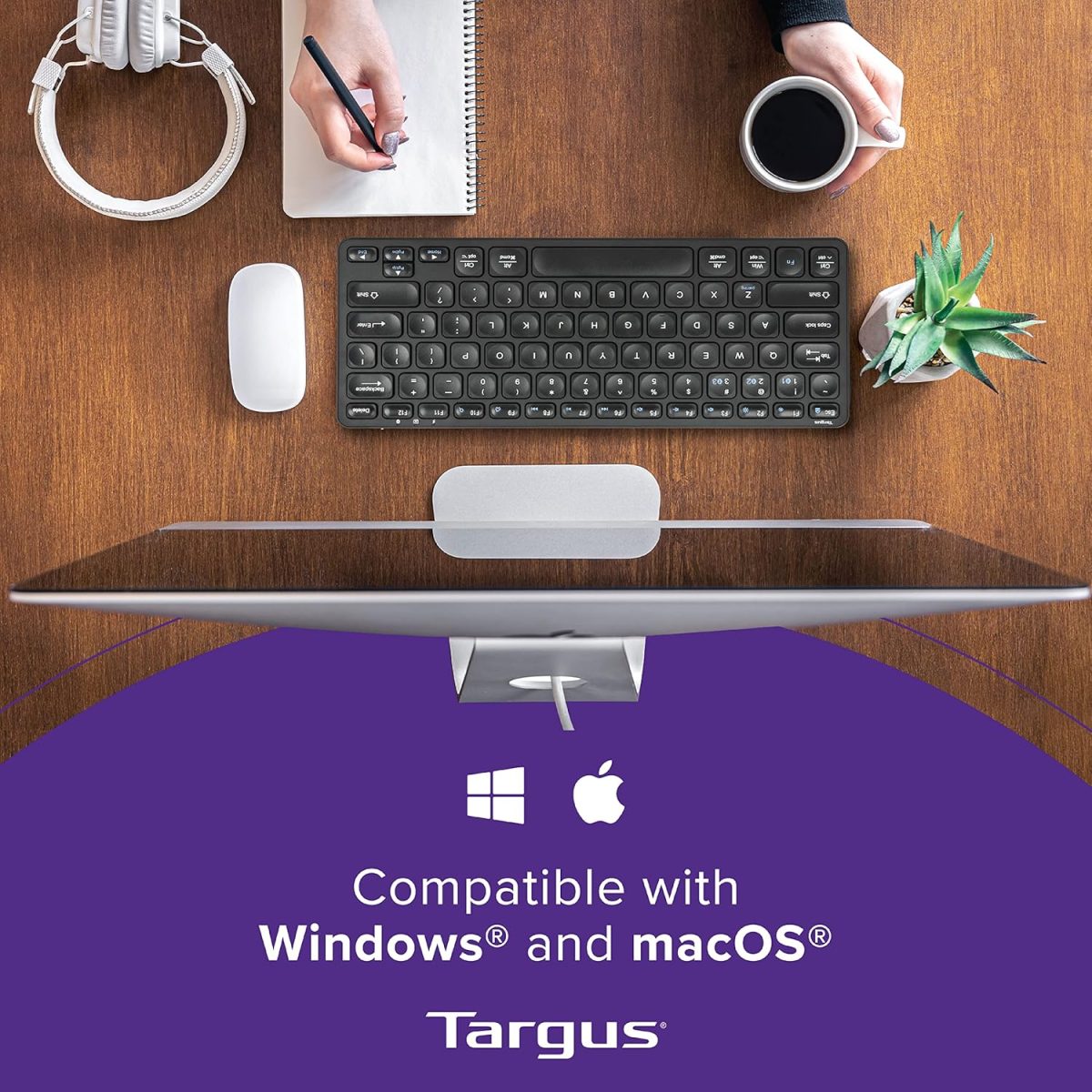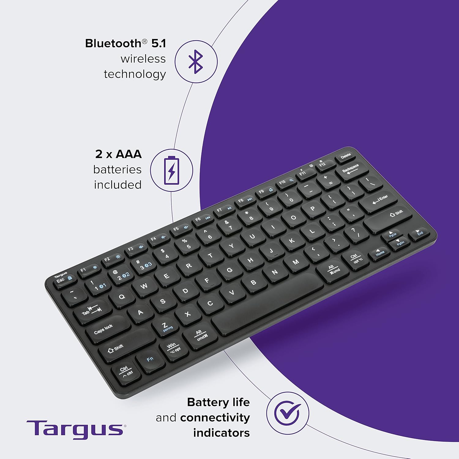 Targus AKB862 Compact Multi-Device Bluetooth® 5.1 Keyboard (Black),DefenseGuard™ Antimicrobial Protection*,Multi-Device connectivity for up to 3 Devices,for Windows/Mac/Android/Laptop/PC/Tablet/Phone