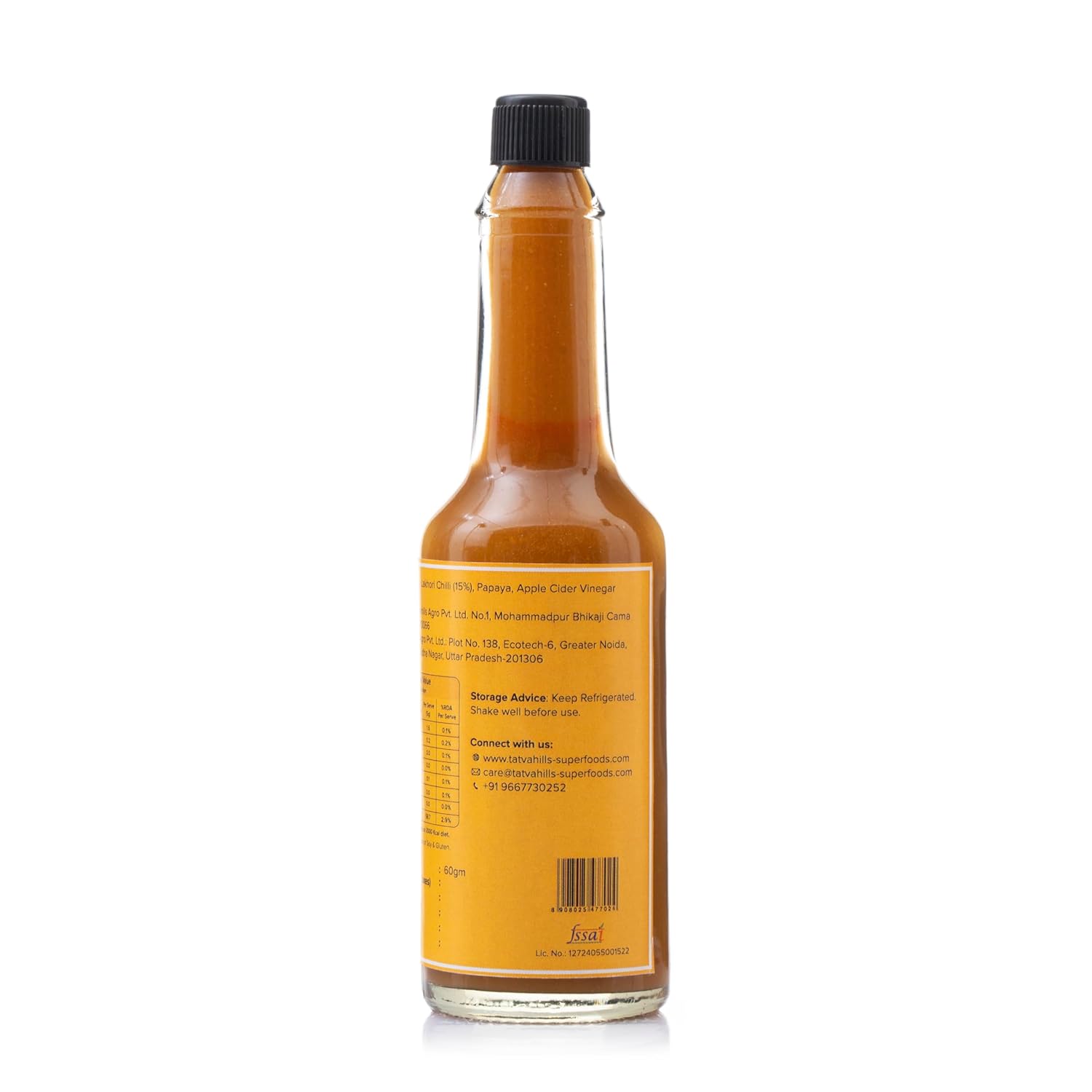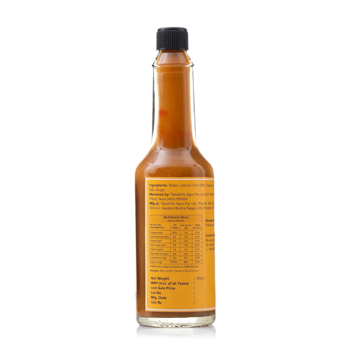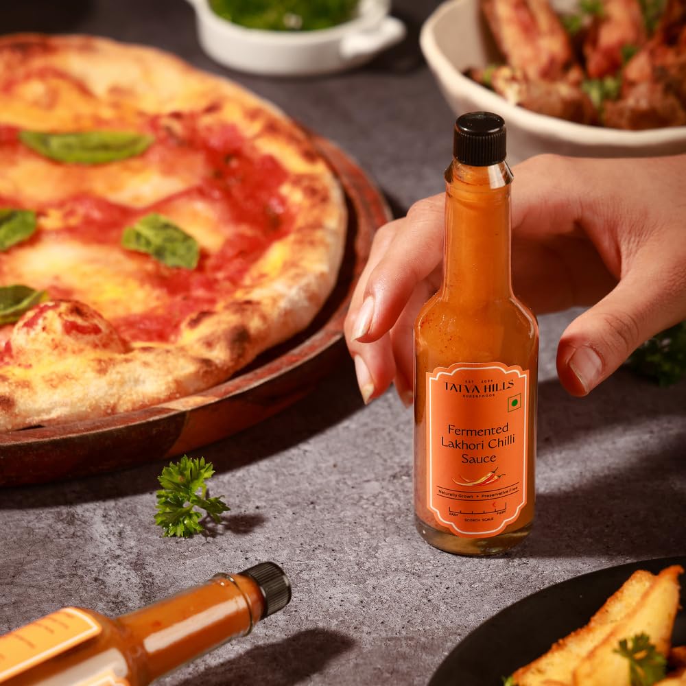 Authentic Lakhori Chillies from the Himalayas: This hot chilli sauce is made using rare Lakhori chillies grown on our organic farms in Almora, Uttarakhand. Cultivated at high altitudes and handpicked with care, these heirloom chillies deliver a naturally bold and complex heat.