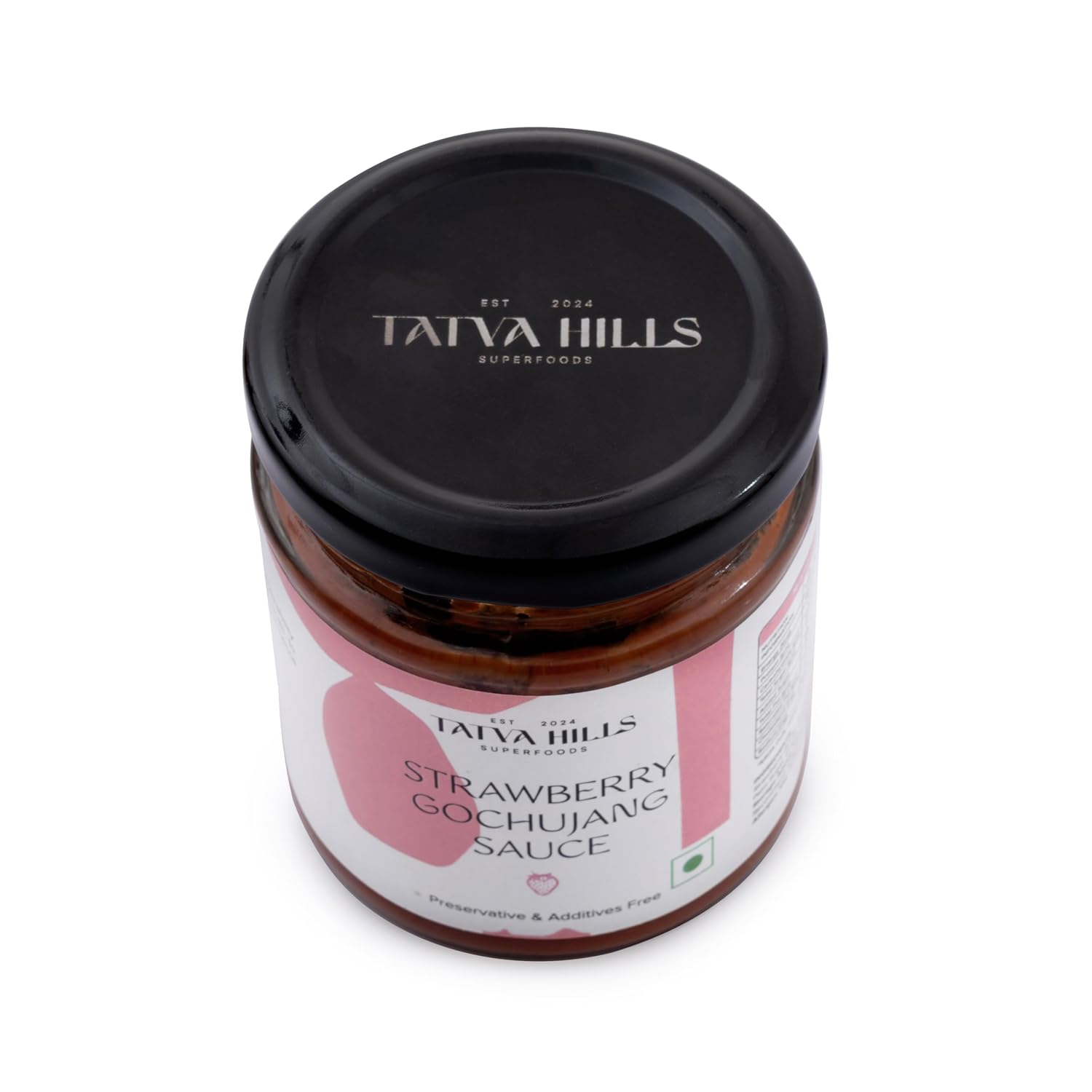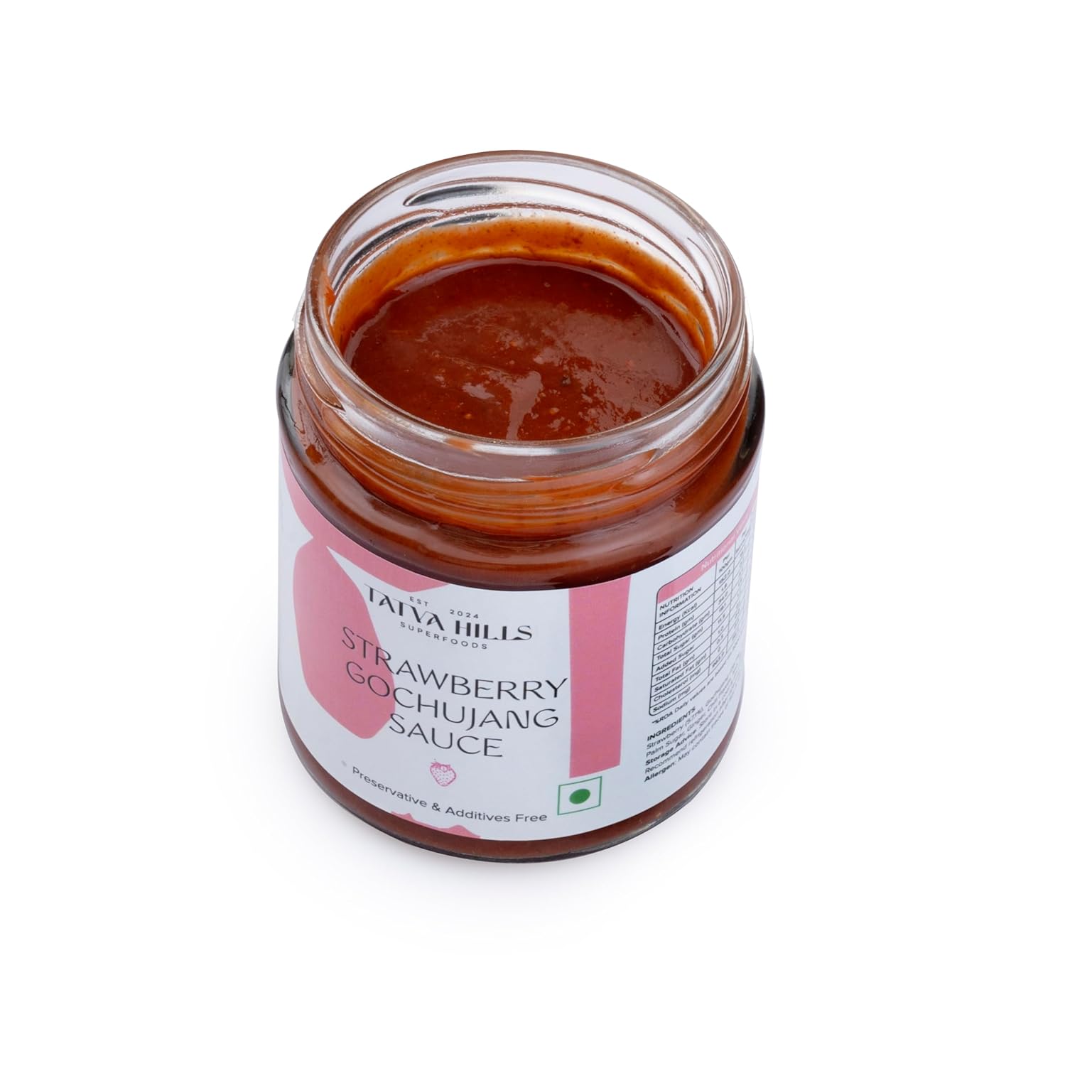 Sweet & Spicy Fusion with Real Strawberries: This unique Korean-style chilli paste is crafted using juicy, farm-fresh strawberries blended with authentic gochujang for a rich, sweet and spicy flavour. It delivers a bold twist on the classic Korean condiment.