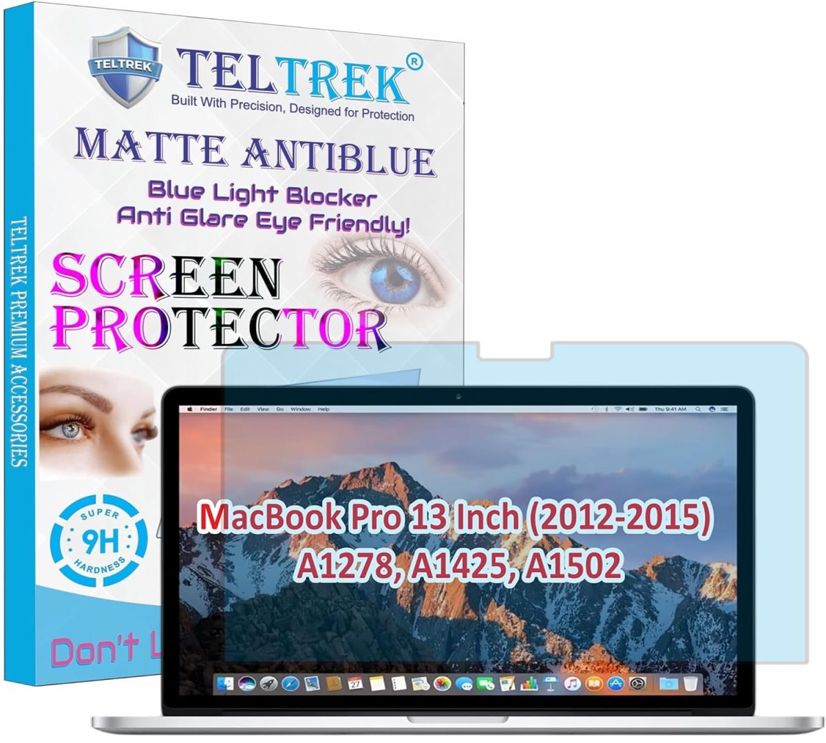 MacBook Pro 13 Inch (2012-2015) A1278, A1425, A1502 AntiBlue Light, Anti UV, Anti Glare Matte Finish Screen Guard by Teltrek offers Anti Scratch protection, Blocks harmful Blue Light and UV rays, reduces glare, and protects eyes from strain while keeping your laptop screen safe from dust and fingerprints.