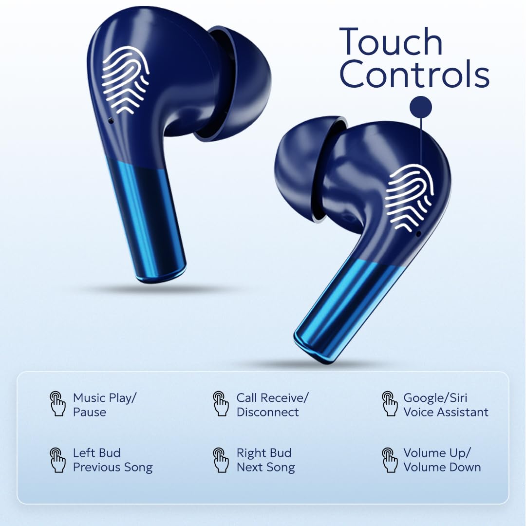 TEMPT Wave Pro True Wireless Bluetooth Earbuds | 72hrs Playback Time | 13mm Bass Driver | Bluetooth V5.3 | IPX6 Water Resistant | Google & Siri Voice Assistant – Blue