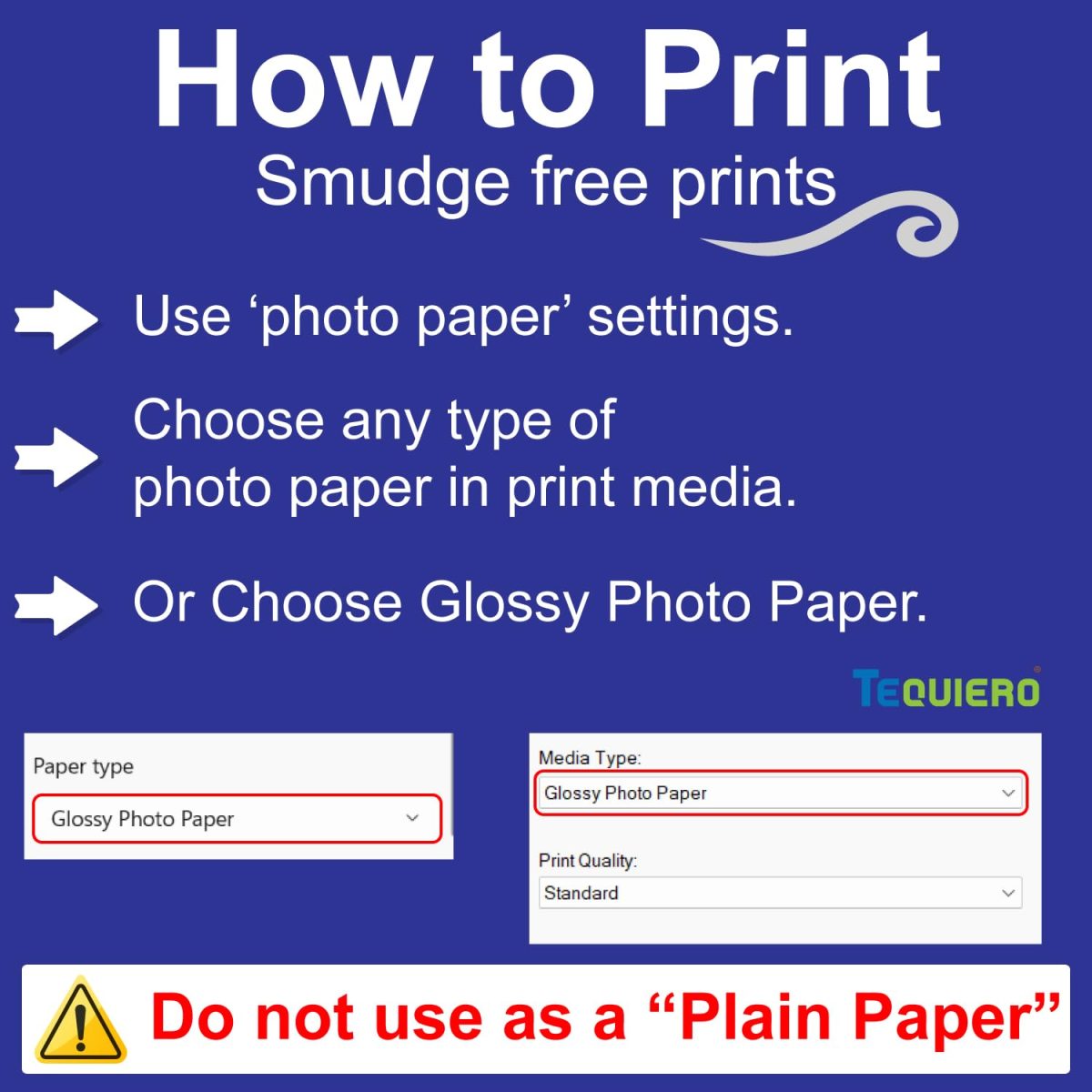 SMUDGE-FREE PRINTS : Instant dry, smudge free crisp glossy prints. Specially coated for better and long lasting ink absorption.