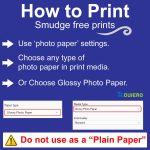 HIGH QUALITY ADHESIVE : Label glue for strong hold. ONLY for INKJET Printers, NOT for Laser and Thermal transfer printers or Polaroid camera.It is easy to oxidize and turn yellow because of ink quality, avoid storing in a place exposed to high temperature, humidity and direct sunlight, we suggest to laminate it if it’s necessary.