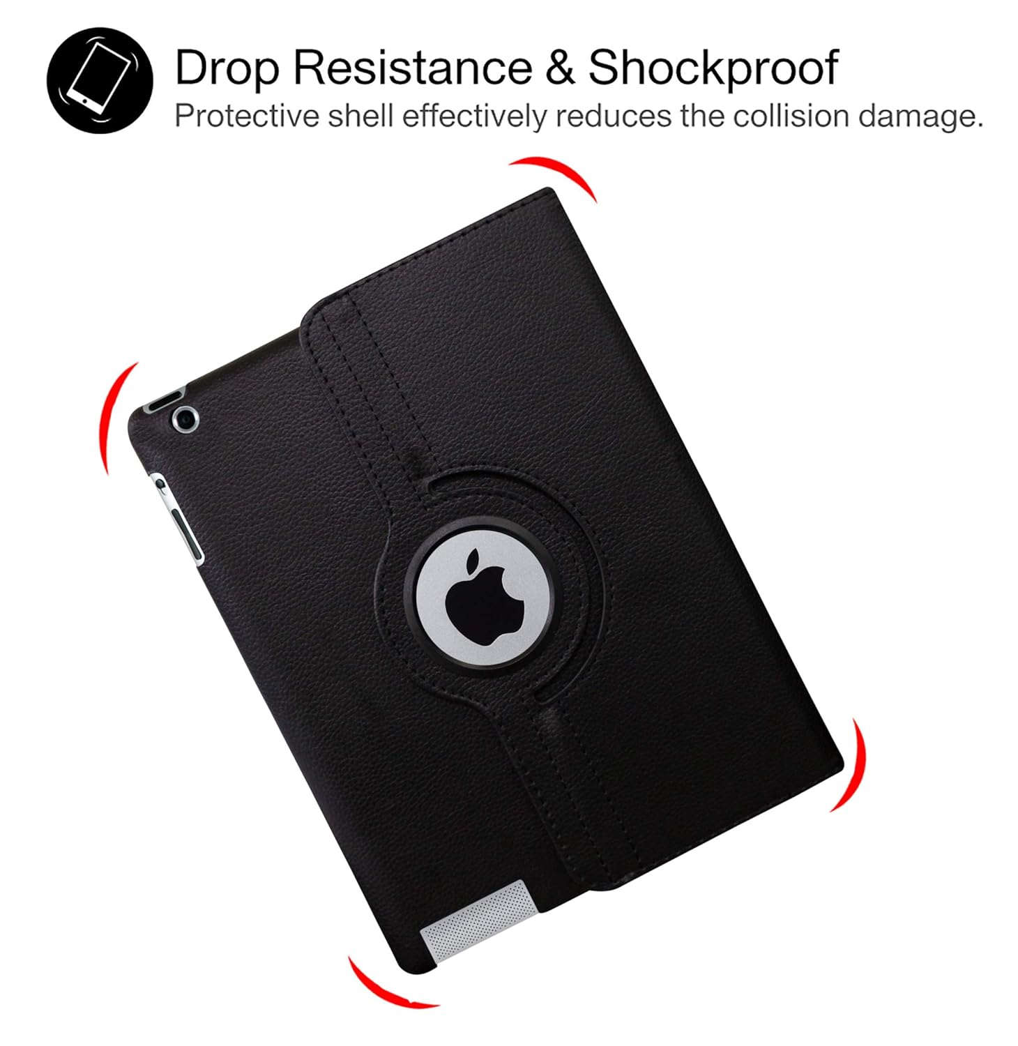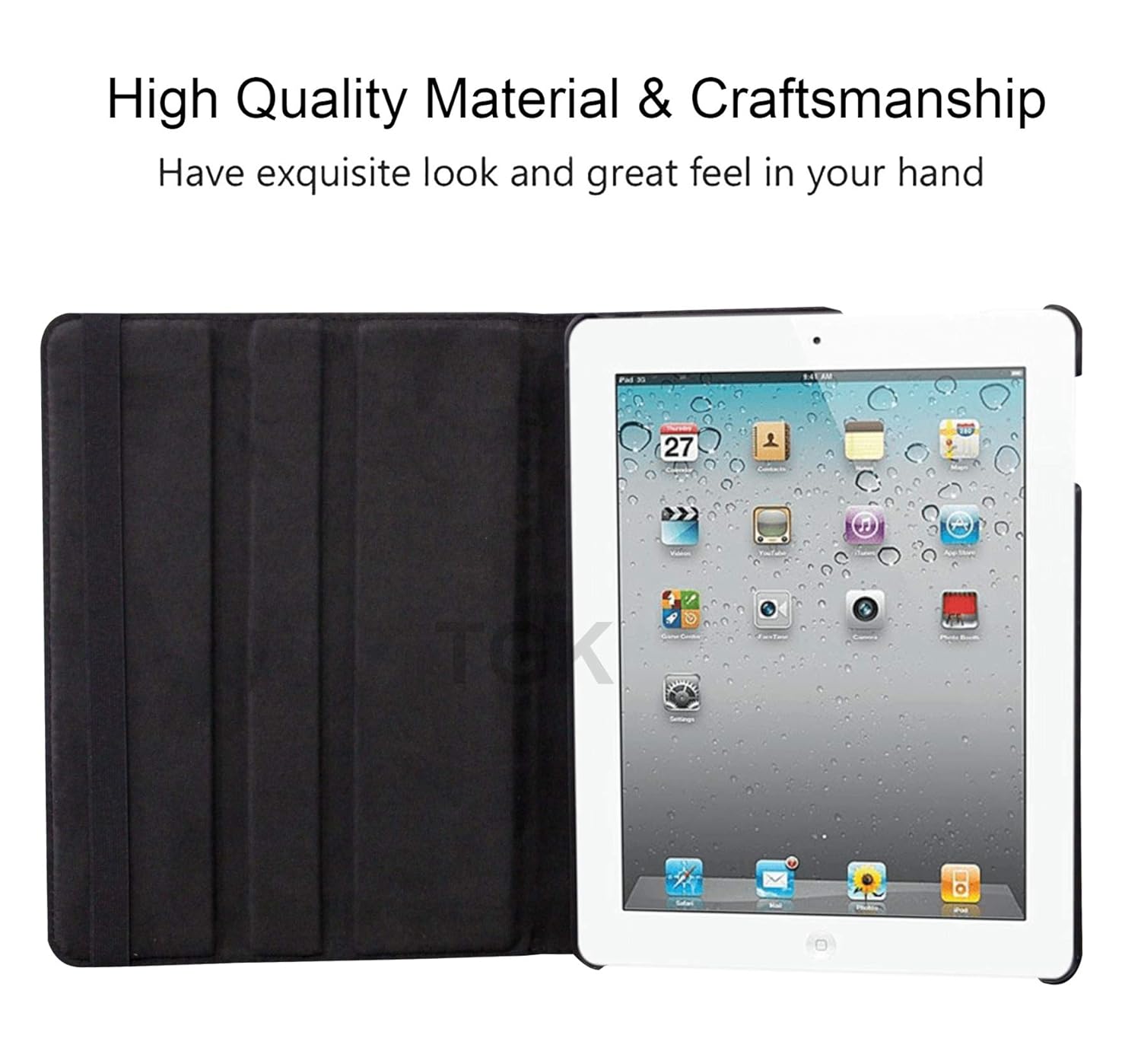 Designed for iPad 2 /iPad 3 / iPad 4 [the 2nd, 3rd, 4th Generation 9.7-Inch iPad Released before 2013, Model:️ A1460, ️ A1459, ️A1458, ️ A1416, ️A1430, ️A1403, ️A1397,️ A1396, ️ A1395], (NOT for other later iPad such as iPad Mini, iPad Air, iPad Pro, 2018/2017 iPad 9.7 inch). Please check back bottom of your iPad to find the model number before ordering this cover. this TGK case features a combination of functionality and style. Well built to protect your tab for the years to come. 360 degrees rotating swivel allows the device to stand both vertically and horizontally with ease. Access to all features and controls. No-scratch microfiber interior adds comfort and an additional layer of protection. With elastic band to secure the case closed and to keep the front cover open.