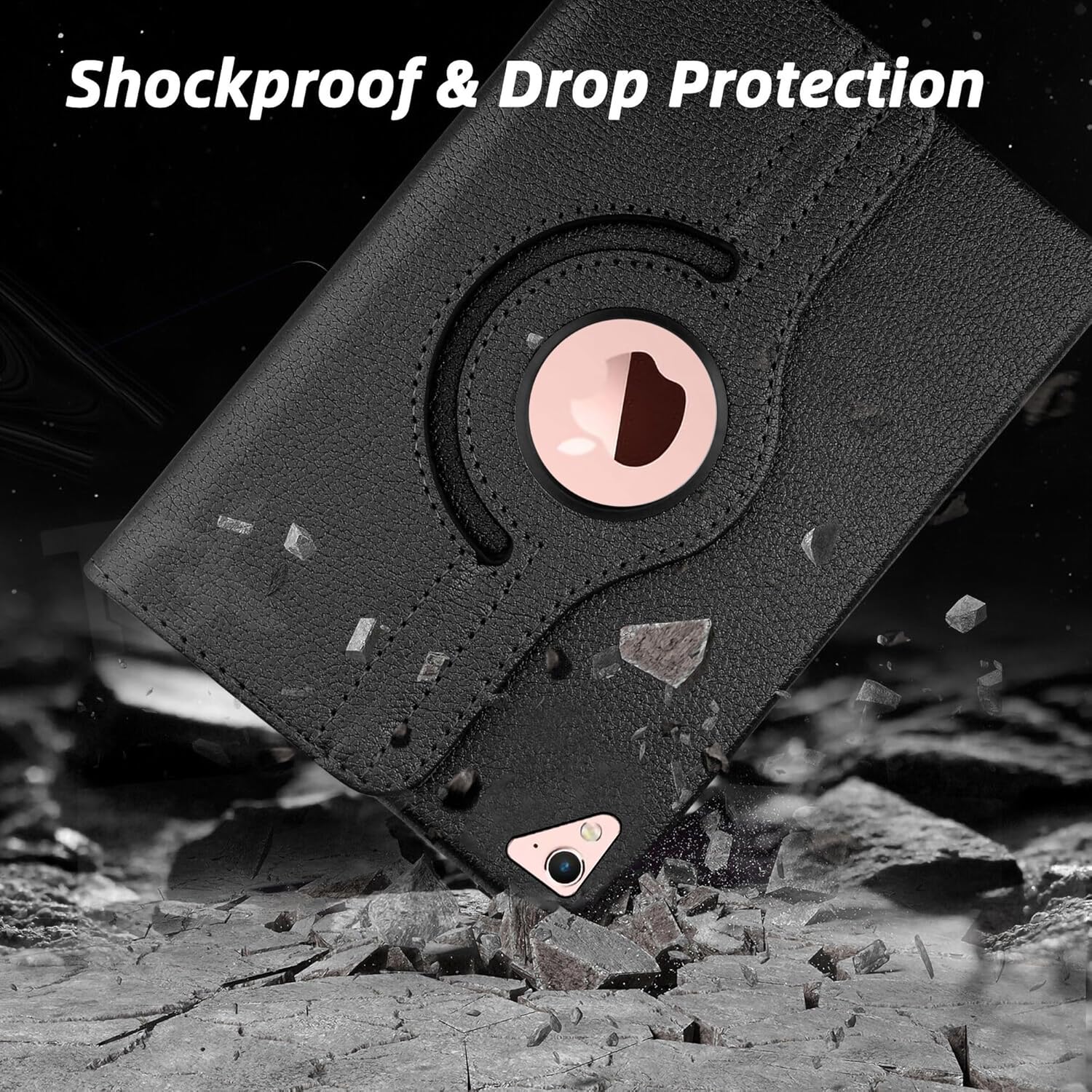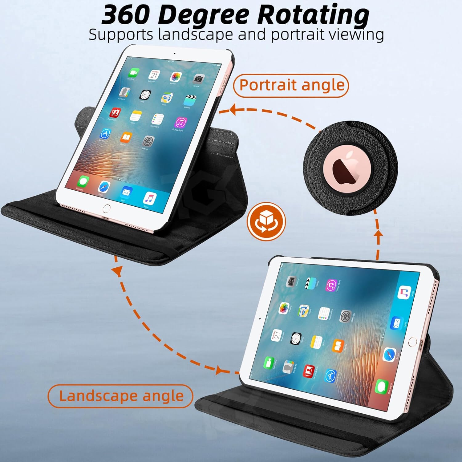 [Rotating Structure]: 360 degrees rotating swivel allows the ipad to rotate both flexible vertically and horizontally while in the case. 360 degrees Rotating shape in the case for flexible landscape and portrait viewing. Made of PU leather and microfiber interior for comfortable sense of touch and durable purpose while provides ultimate protection.