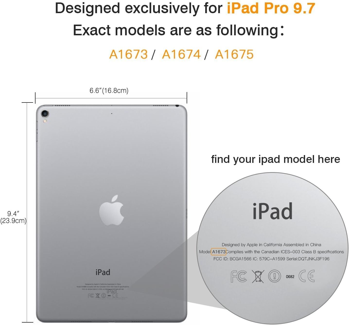 [COMPATIBLITY] – Designed to fit iPad Pro 9.7 inch (2016 Released) [Compatible Model No: A1673, A1674, A1675, MLMP2HN/A , MM172HN/A , MLMN2HN/A , MLMW2HN/A , MLMX2HN/A , MM192HN/A , MLMV2HN/A , MLN02HN/A , MLMY2HN/A , MLN12HN/A , MM1A2HN/A , MLPX2HN/A , MLQ42HN/A , MLQ72HN/A , MLPW2HN/A , MLQ32HN/A , MLQ62HN/A , MLPY2HN/A , MLQ52HN/A , MLQ82HN/A , MLYJ2HN/A], NOT compatible with other iPad Models. Please check back bottom of your iPad to find the model number before ordering this cover.