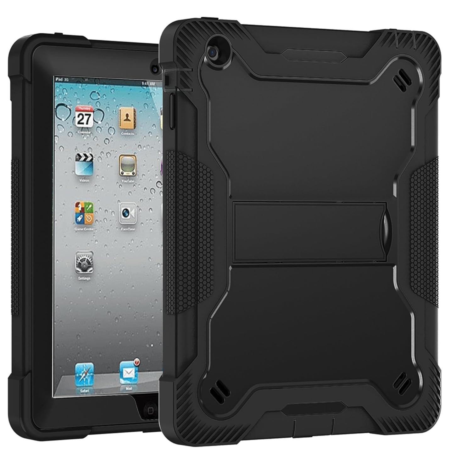 TGK Slim Heavy Duty Shockproof Protection Kickstand Hybrid Case Cover for iPad 3rd Gen 9.7 inch Black